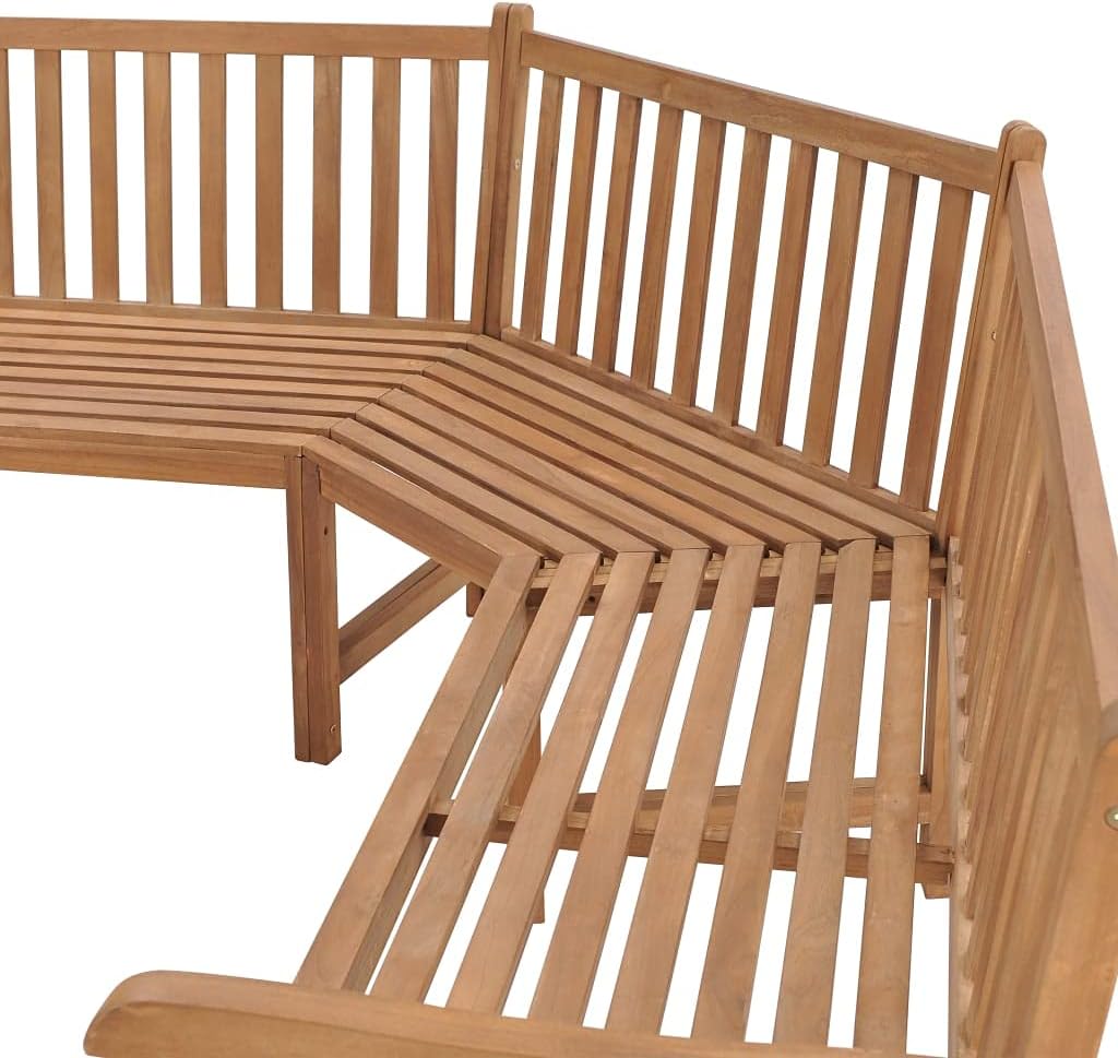 Patio Corner Bench, Patio Bench Porch Bench Outdoor Chair Wood Bench Suitable for Garage Outdoors Garden Yard, 72.8"x72.8"x35.4" Solid Teak Wood