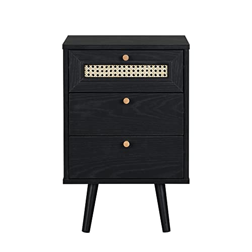 Anya Woven Rattan 3-Drawer Bedside Table (Natural)