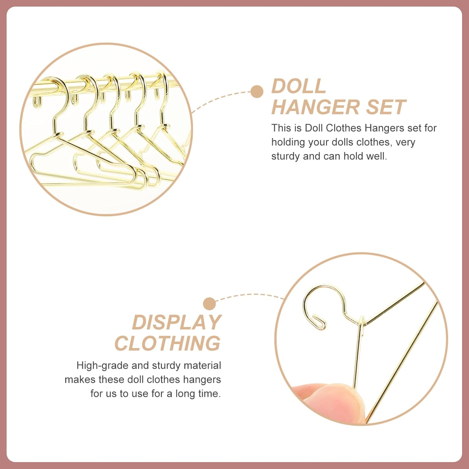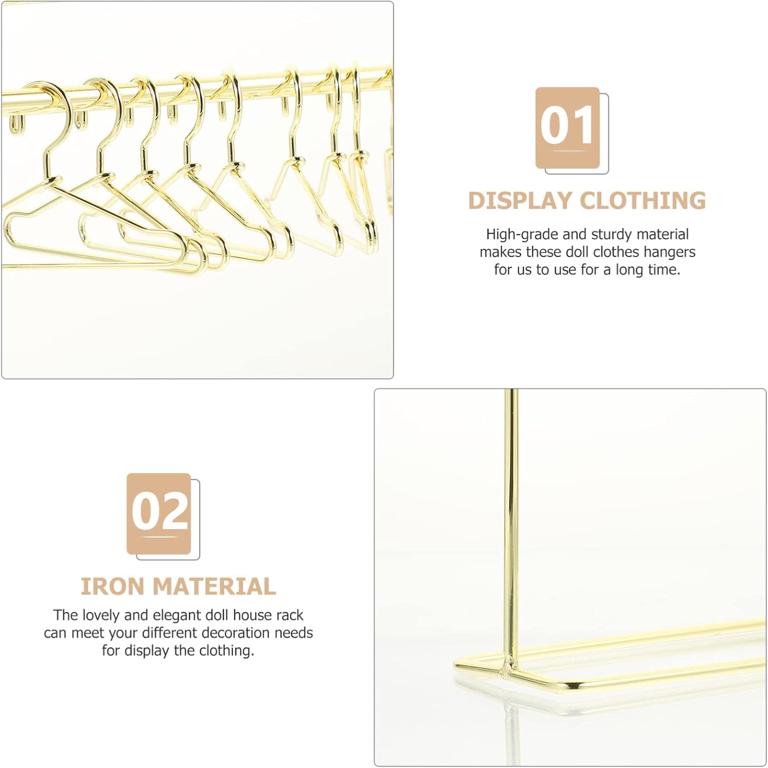 NUOBESTY 1 Set Doll Dress Rack Doll Clothes Hanger Garment Display Rack Doll House Furniture Accessories for Kids Party Supplies - Golden