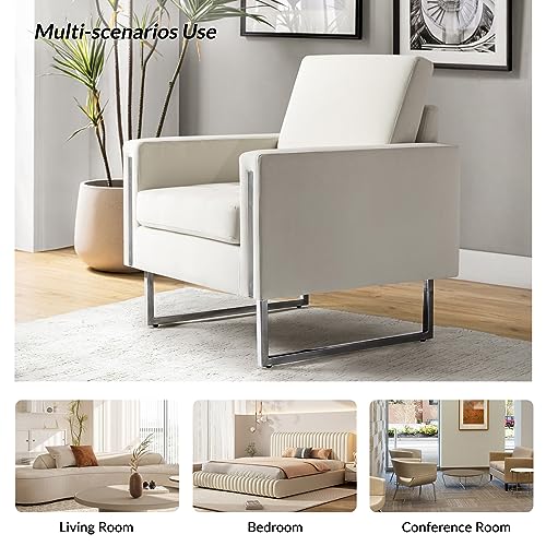 HULALA HOME Modern Velvet Accent Armchair with Back & Seat Cushions, Comfy Upholstered Club Chair with Metal Legs, Tufted Sofa Chair for Living Room Bedroom, Mustard