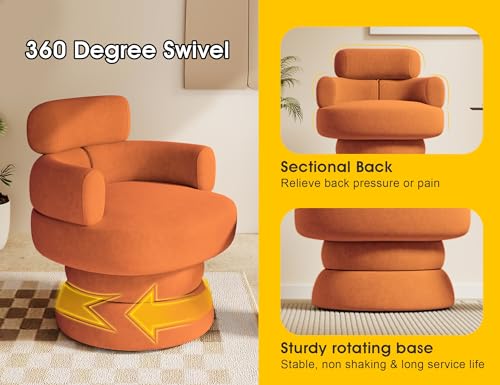 Mid-century Modern 360° Swivel Accent Chair, Velvet Round Barrel Chair with Sectional Back, Oversized Cuddle Single Sofa Chairs for Living Waiting Room, Bedroom, Homrest, Reading Nook (Mustard)