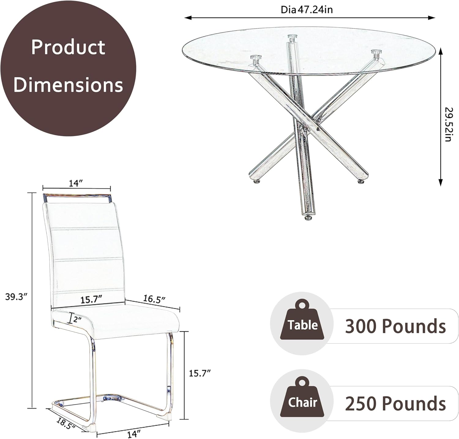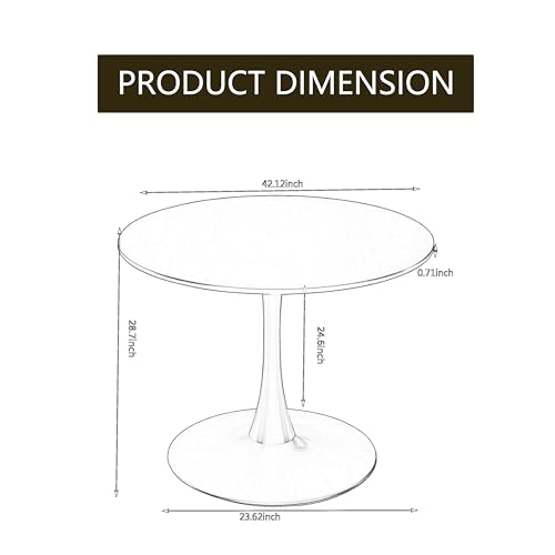 Round Glass Dining Table Set for 6, 7 Pcs Mordern Circle Dining Table Set with Black PU Faux Upholstered Dining Chairs, 47'' Retro Glass Dining Room Table Set for Kitchen