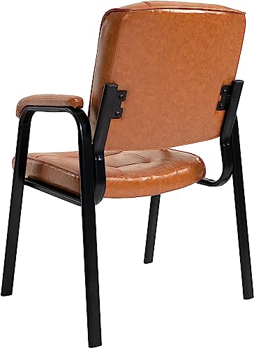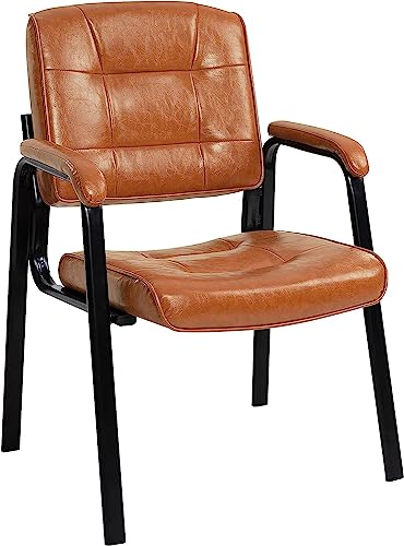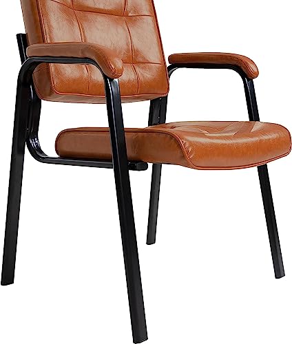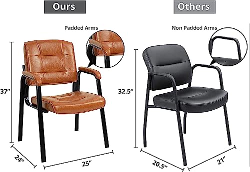 Naomi Home Waiting Room Chair Set of 2, Heavy Duty Leather Executive Waiting Room Chairs, Lobby Reception Chairs with Padded Arm Rest, Guest Chairs Set of 2 - Caramel