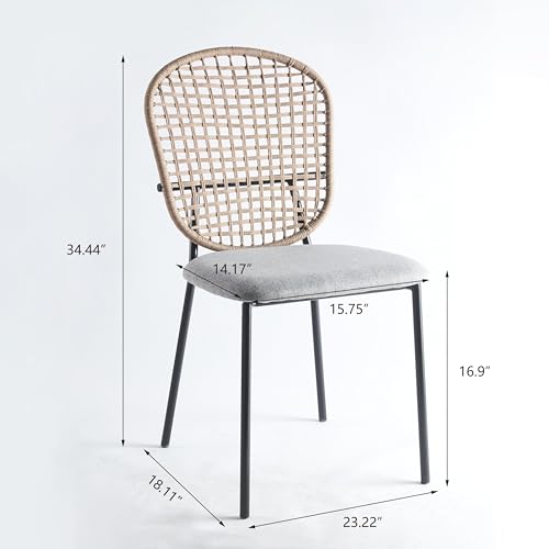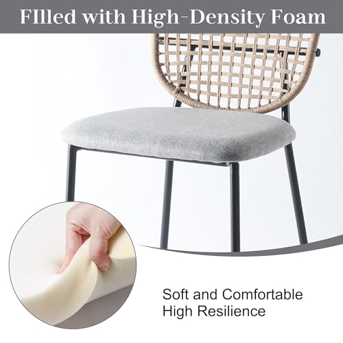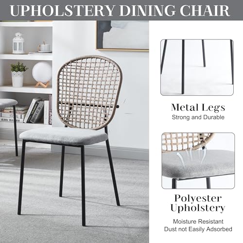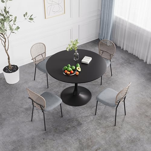 Black Round Dining Table Set, Small Retro Circle Dining Room Set for 4, 42'' Mid Century Modern Kitchen Table Set, 5 Pcs Farmhouse Circular Dining Set with 4 Linen Ratten Chairs for Coffee Shop