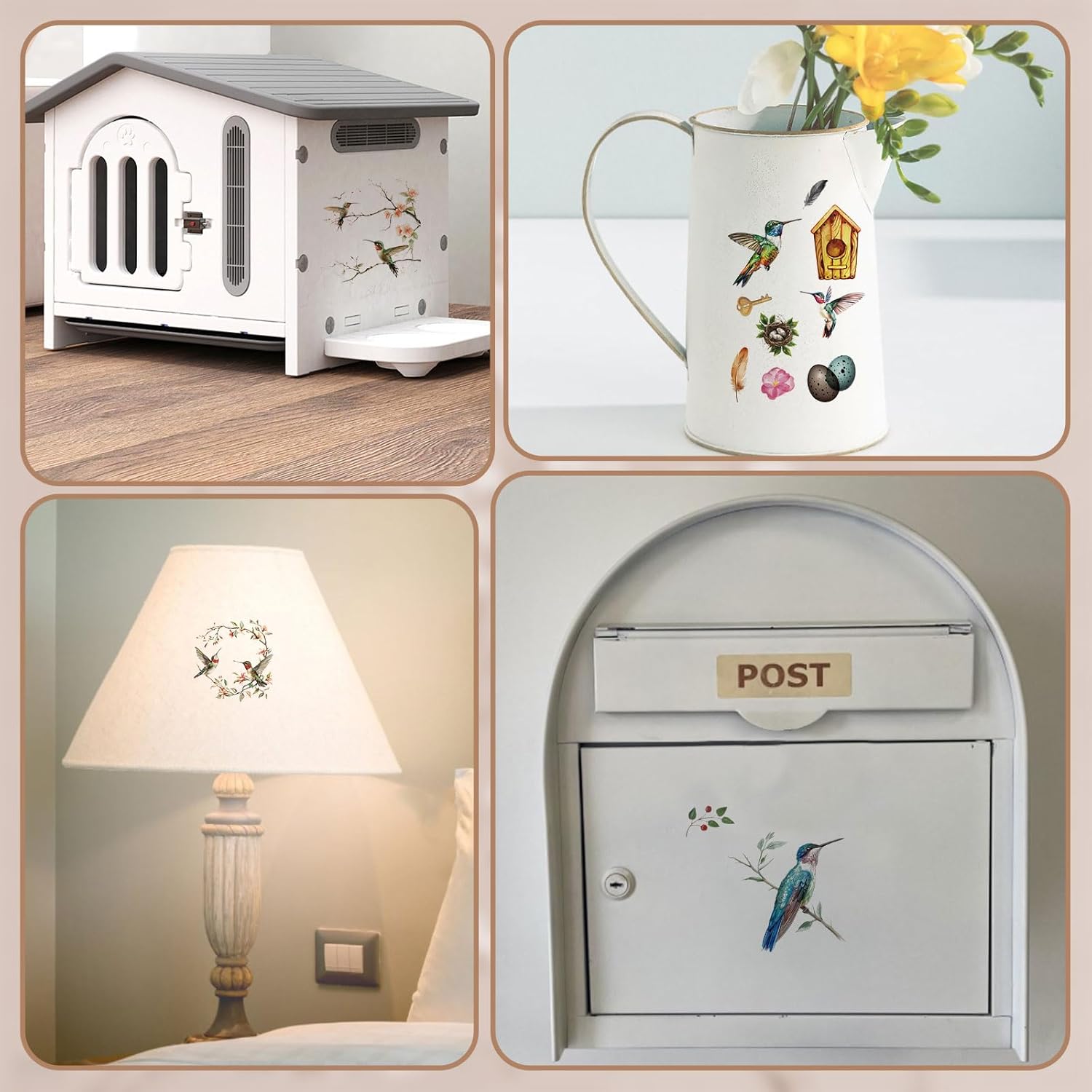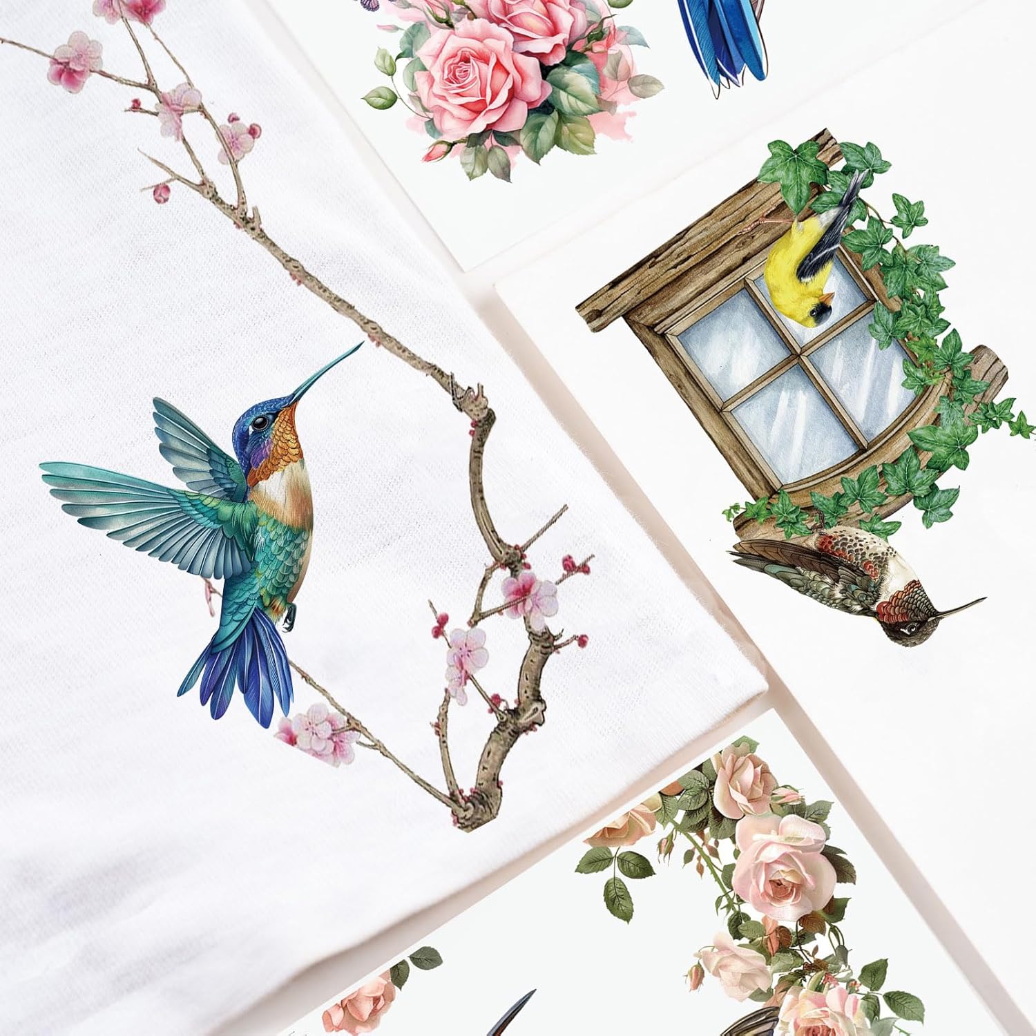 WANDIC 10 Sheets Rub On Transfer Stickers, Bees Birds Decals Fashionable Flower Waterproof Transfers for Furniture Table Water Bottle DIY Craft, 11.8 * 3.9in