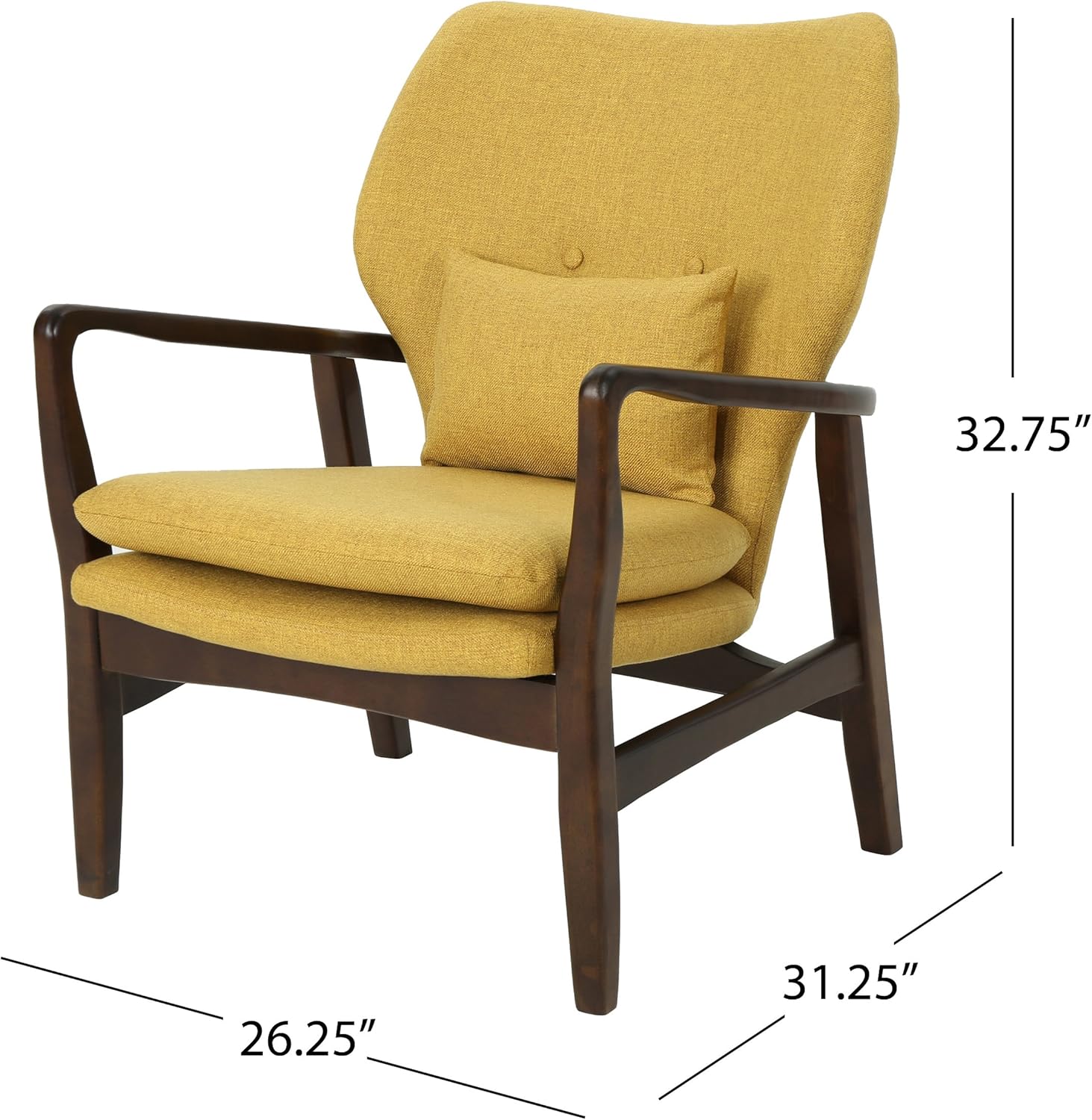 Christopher Knight Home Ventura Mid Century Modern Fabric Club Chair, Mustard, 31.25D x 26.25W x 32.75H Inch