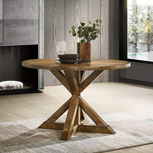 48" Round Dining Table Set 5-Piece for 4 to 6, Circle Wooden Kitchen Table with Solid Wood Cross-buck Pedestal Base with 4 Dining Chairs for Living Room Furniture- 5-Piece Set Black