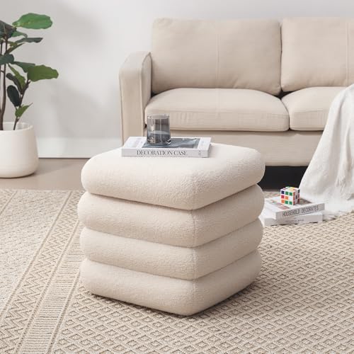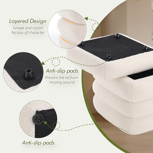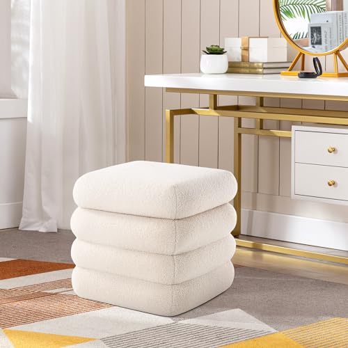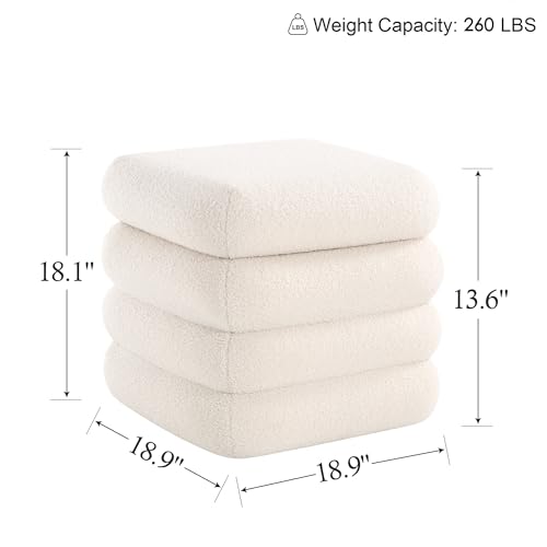 Square Boucle Ottoman with Storage, Large Cube Sherpa Foot Stool, Tufted Modern Footrest for Living Room, Bedroom, Vanity Room, Dorm, Home Décor, White