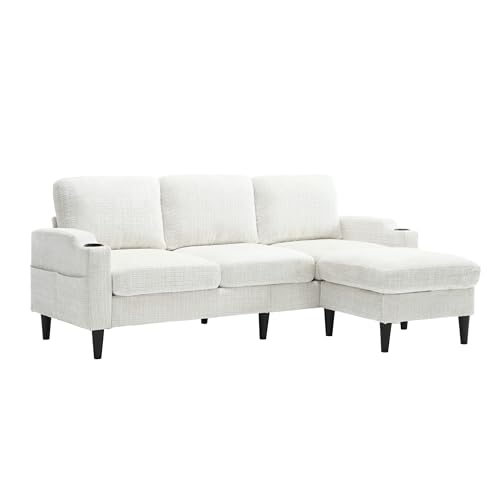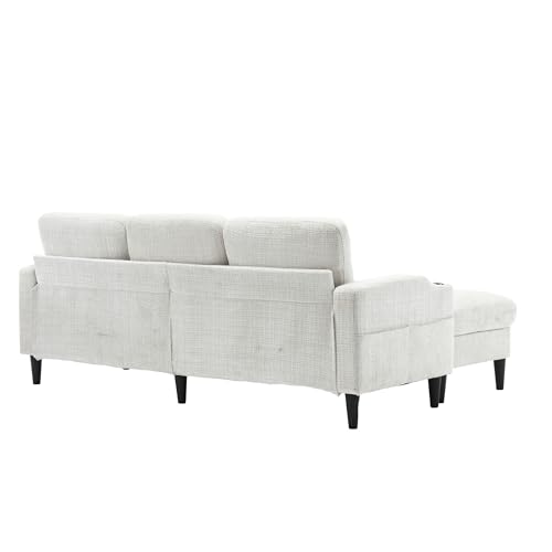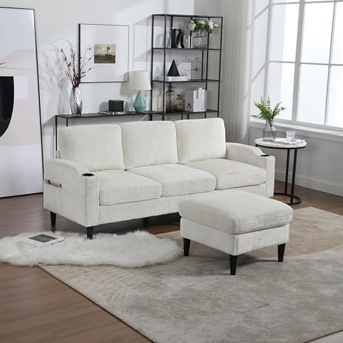 L Shaped Sectional Couch, Comfy Chenille 3-Seater Sofa with Storage Ottoman Cup Holders,77.3" Upholstered Small Couch Set for Living Room, Compact Space, Emerald Green