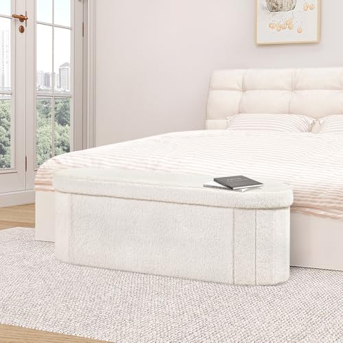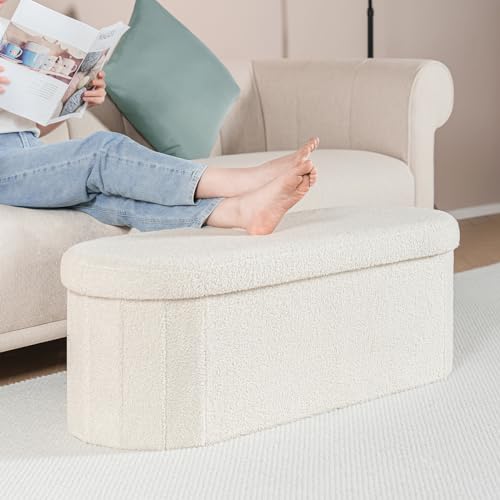 B FSOBEIIALEO Ottoman with Storage for Living Room, Sherpa folding Storage Ottoman Foot Rest, 43.3 Inches Collapsible Bedroon Bench Pink