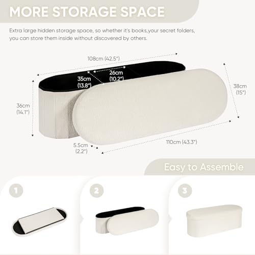 Storage Ottoman Bench with Arms, 44.5" Ottoman Bench Upholstered Boucle Velvet Footrest Bench with Rolled Arm and Nailhead Trim, End of Bed Bench for Bedroom Living Room, Entryway,Cream white