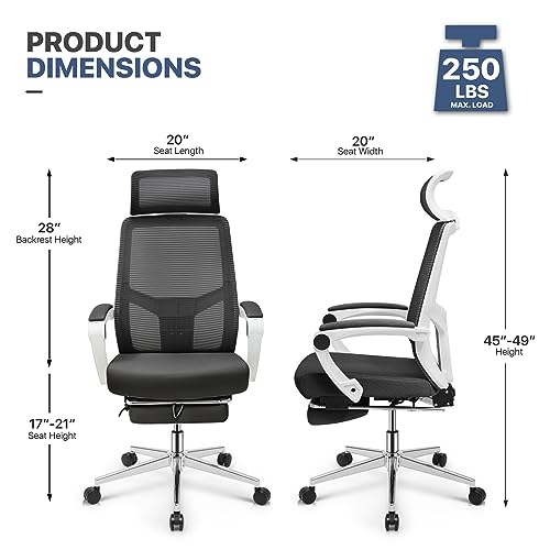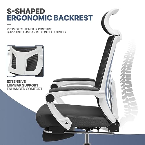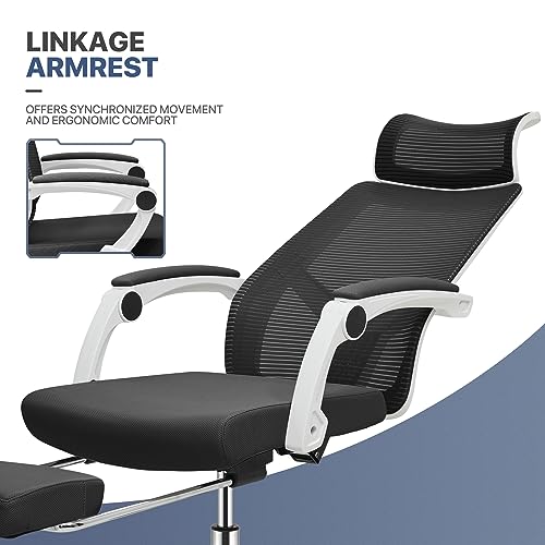 MoNiBloom Office Chair with Footrest Adjustable Ergonomic Task Chair with Linkage Armrest, Lumbar Support Reclining High Back Mesh Chair Suitable for Home Office Nap, 250 Lbs Capacity, Red