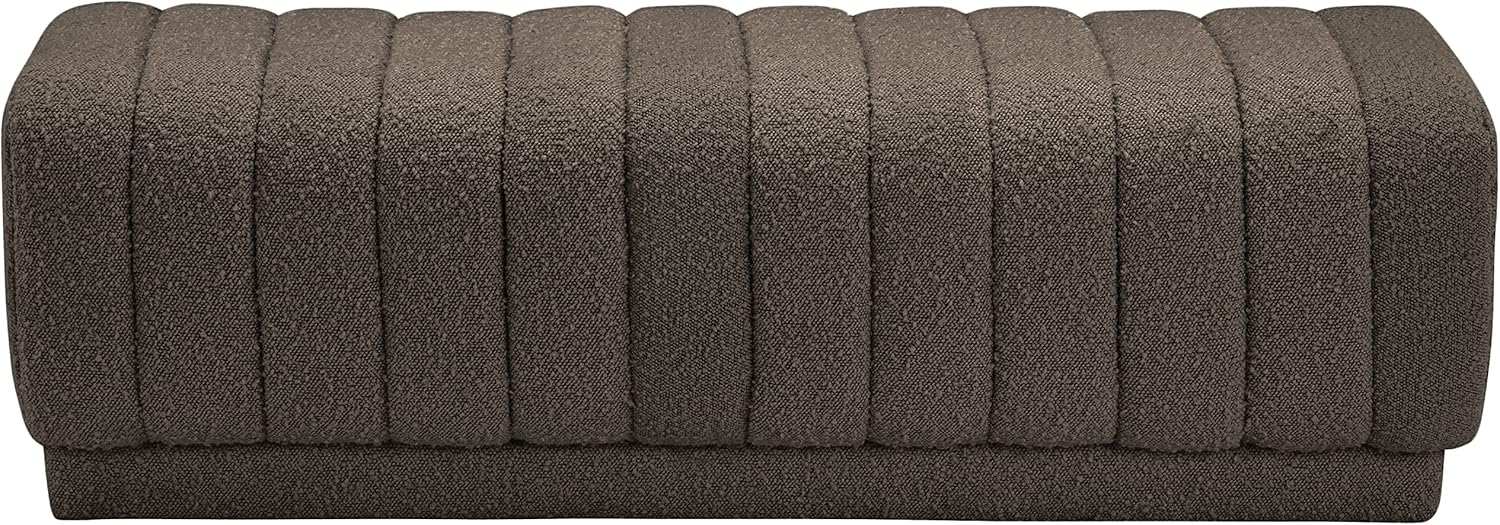 Meridian Furniture Heathrow Collection Modern | Contemporary Ottoman/Bench with Rich Boucle Fabric and Deep Channel Tufting, 52" W x 16" D x 16" H, Brown