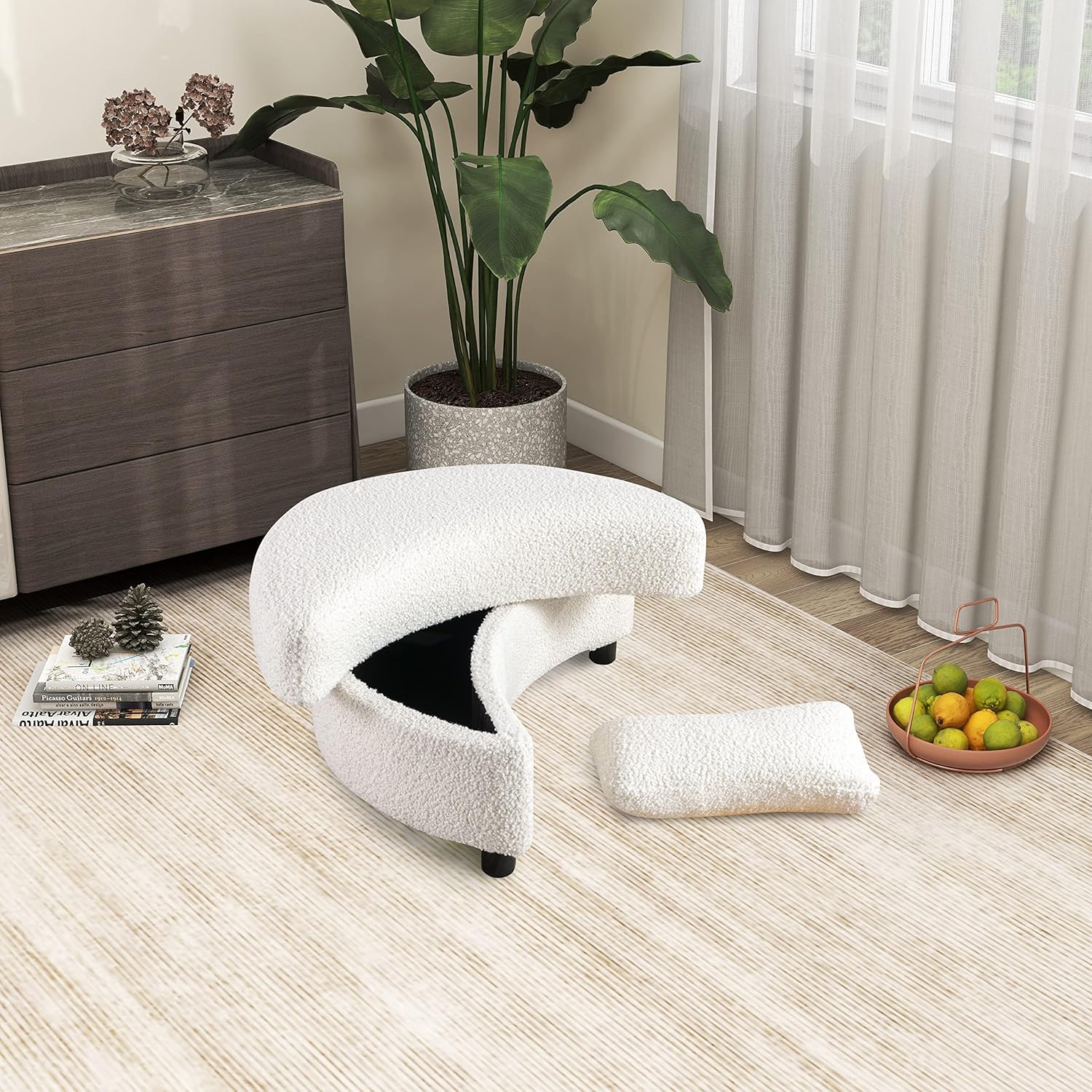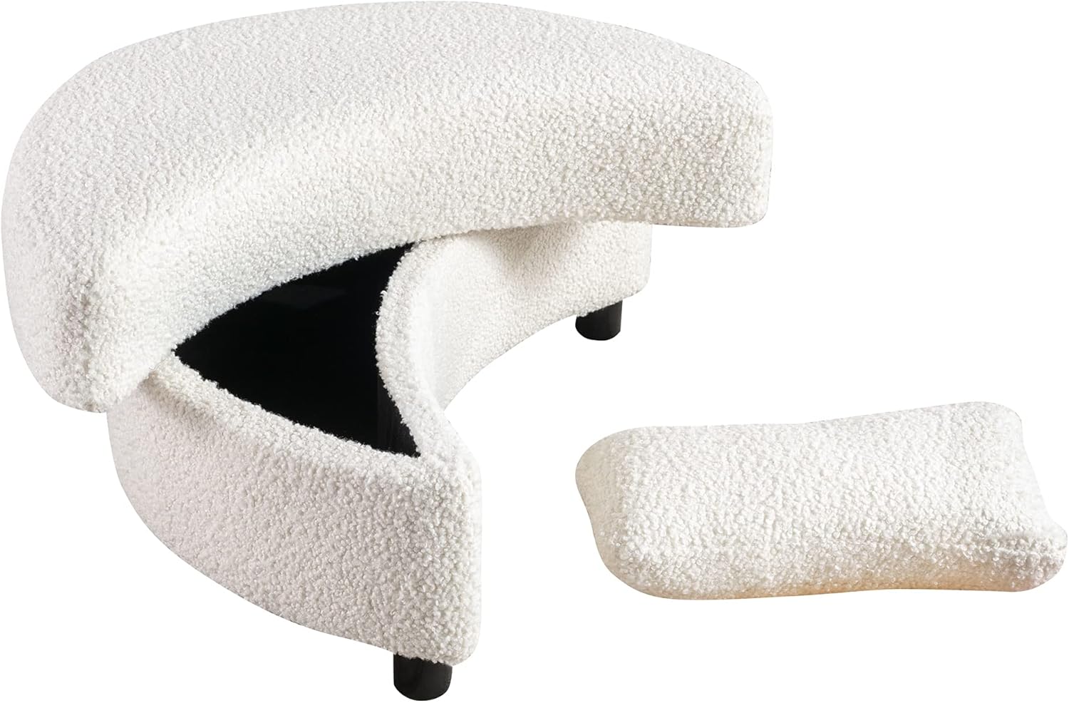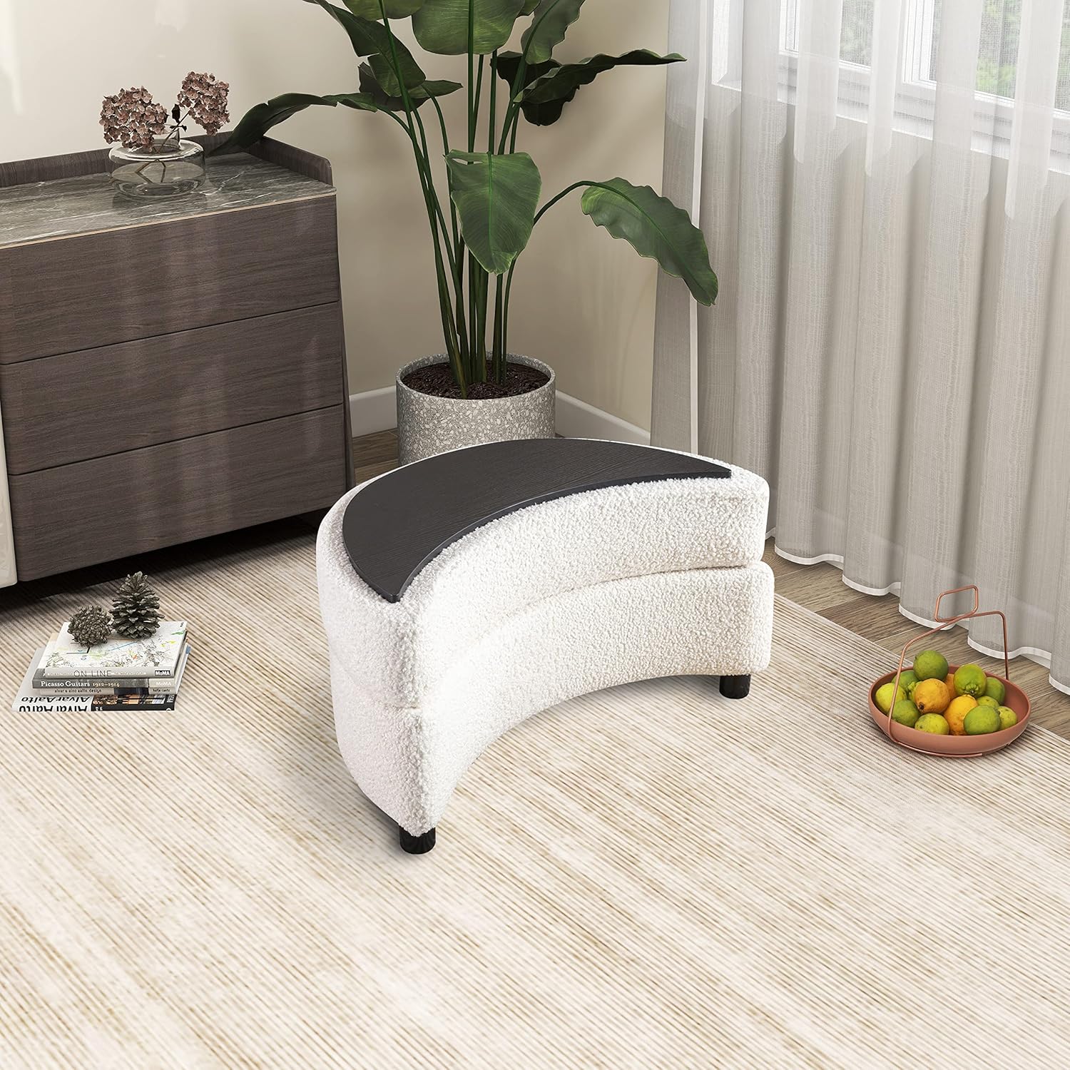 32.7" W Upholstered Storage Bench Half Crescent Moon Large Ottoman Soft Padded Seat Dressing Shoe Bench Foot Rest for Living Room, Entryway, Hallway