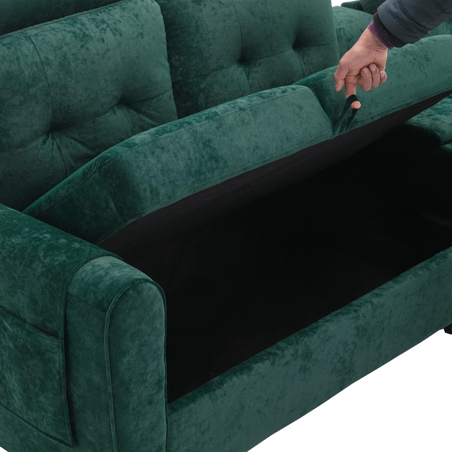 Sleeper, L-Shaped Sectional w/Storage Chaise Lounge and Cup Holder,Comfy Corner Couch Modular Sofa for Living Room/Apartment/Office,Emerald