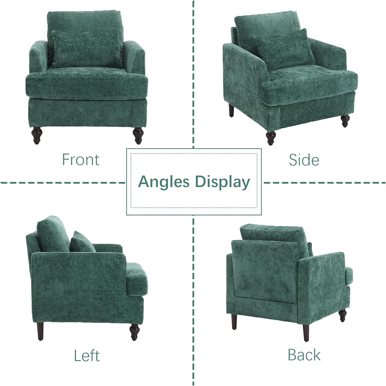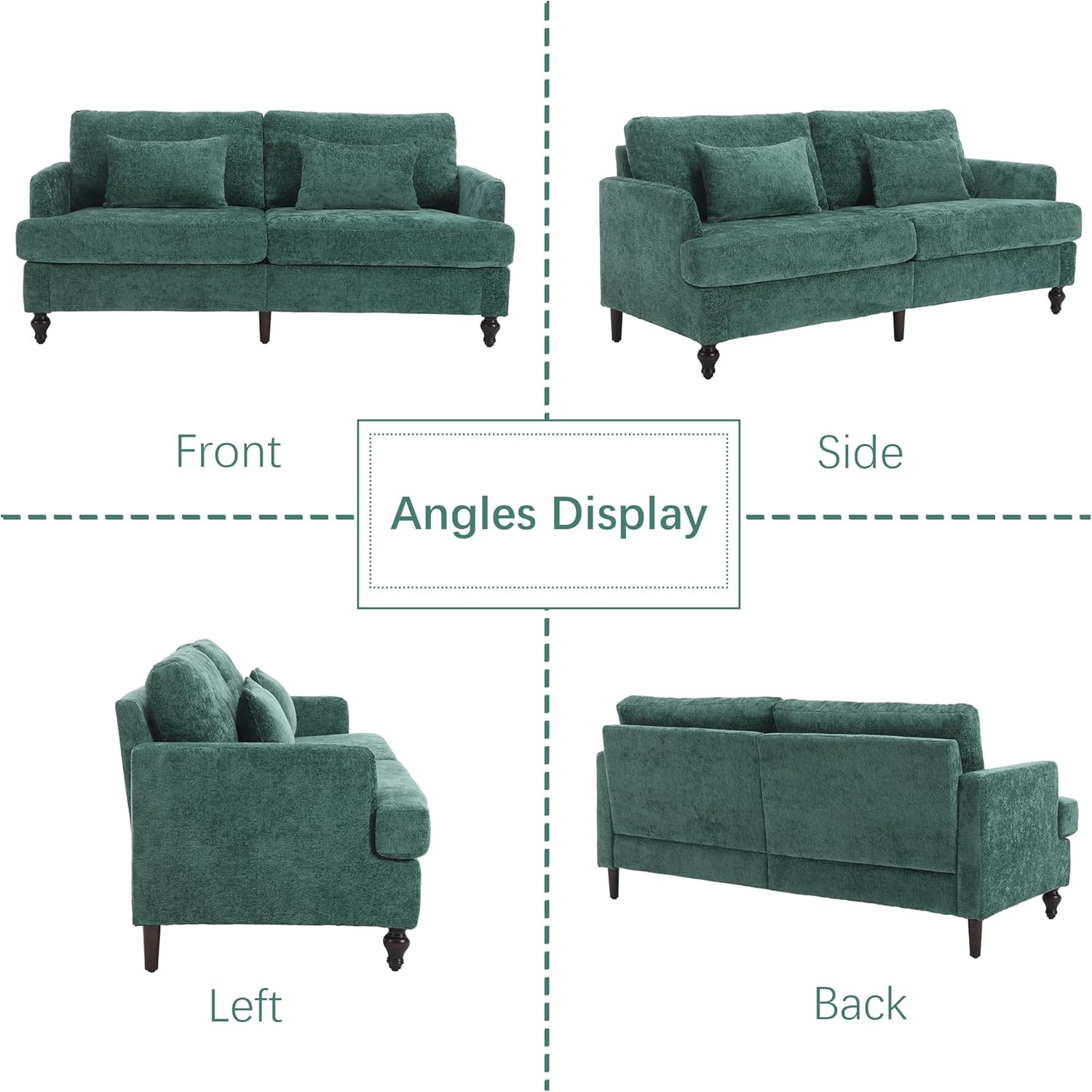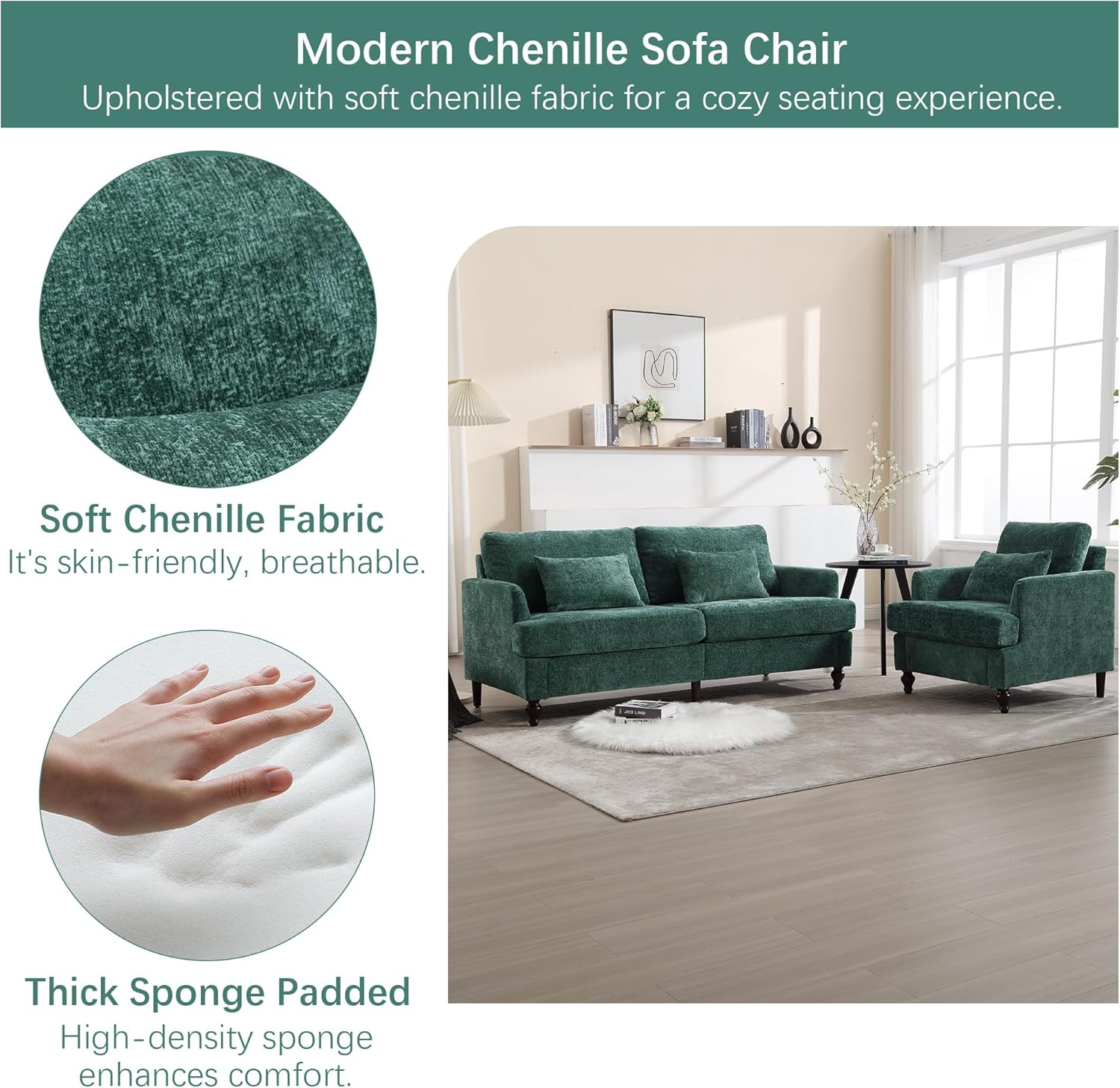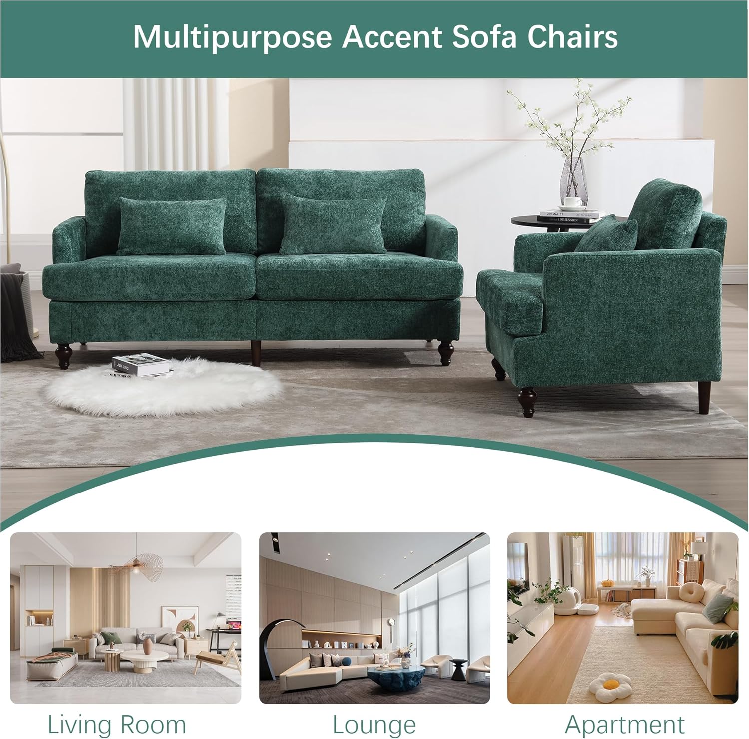 2 Piece Sectional Sofa Set, 70.8" Loveseat Couch & 1 Seater Sofa, Comfy Upholstered Chenille Couches for Living Room, Apartment, Lounge, Emerald