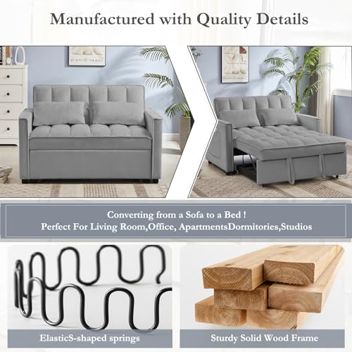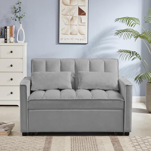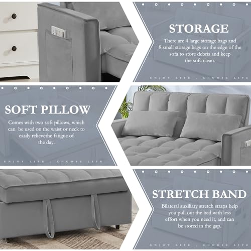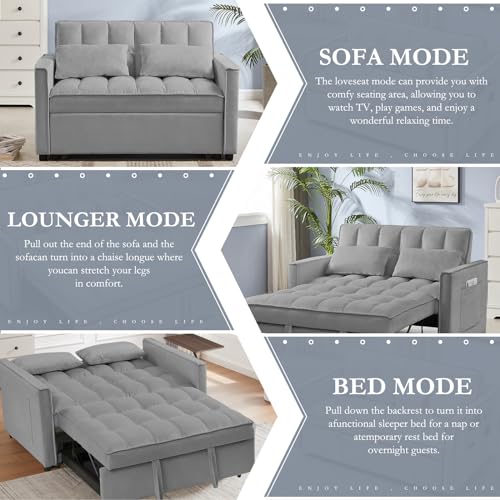 3 in 1 Velvet Pull Out Sofa Bed with Hidden Side Table, Convertible Loveseat Sleeper with 3 Speed Adjustable Backrest and Side Pockets, Tufted Futon Couch for Living Room Bedroom (Pink)