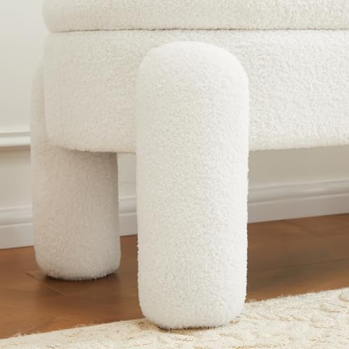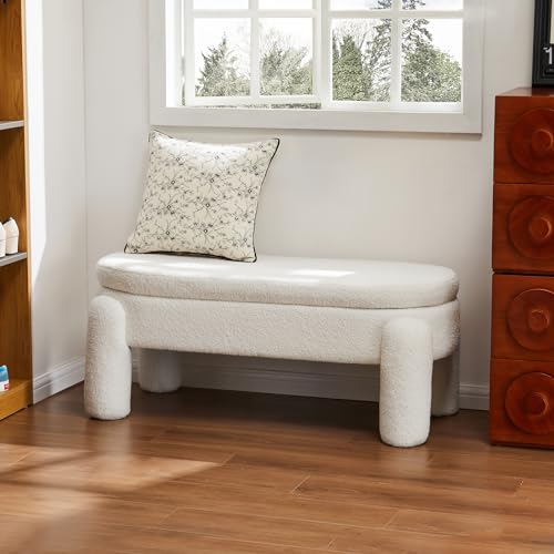 Modern 45 Inch Boucle Storage Ottoman Bench, Upholstered Bedroom Benches for End of Bed, Entryway, Hallway, Living Room, Large Storage Foot Rest Stool, Fur White