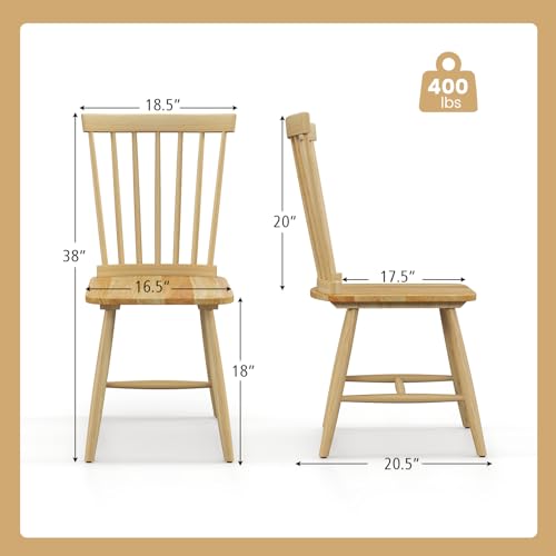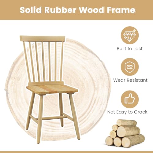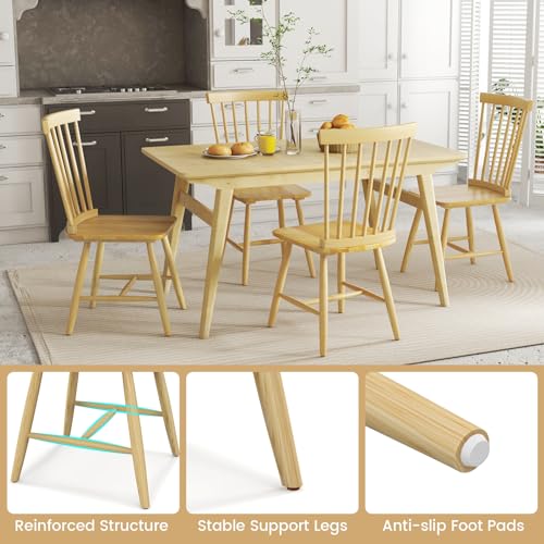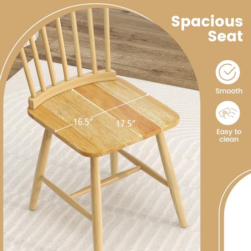 GOFLAME Windsor Dining Chairs Set of 4, Solid Wood Dining Chairs with Ergonomic Spindle Back, Kitchen Side Chairs, Farmhouse Seating Chairs for Dining Room, Kitchen, Living Room, Natural