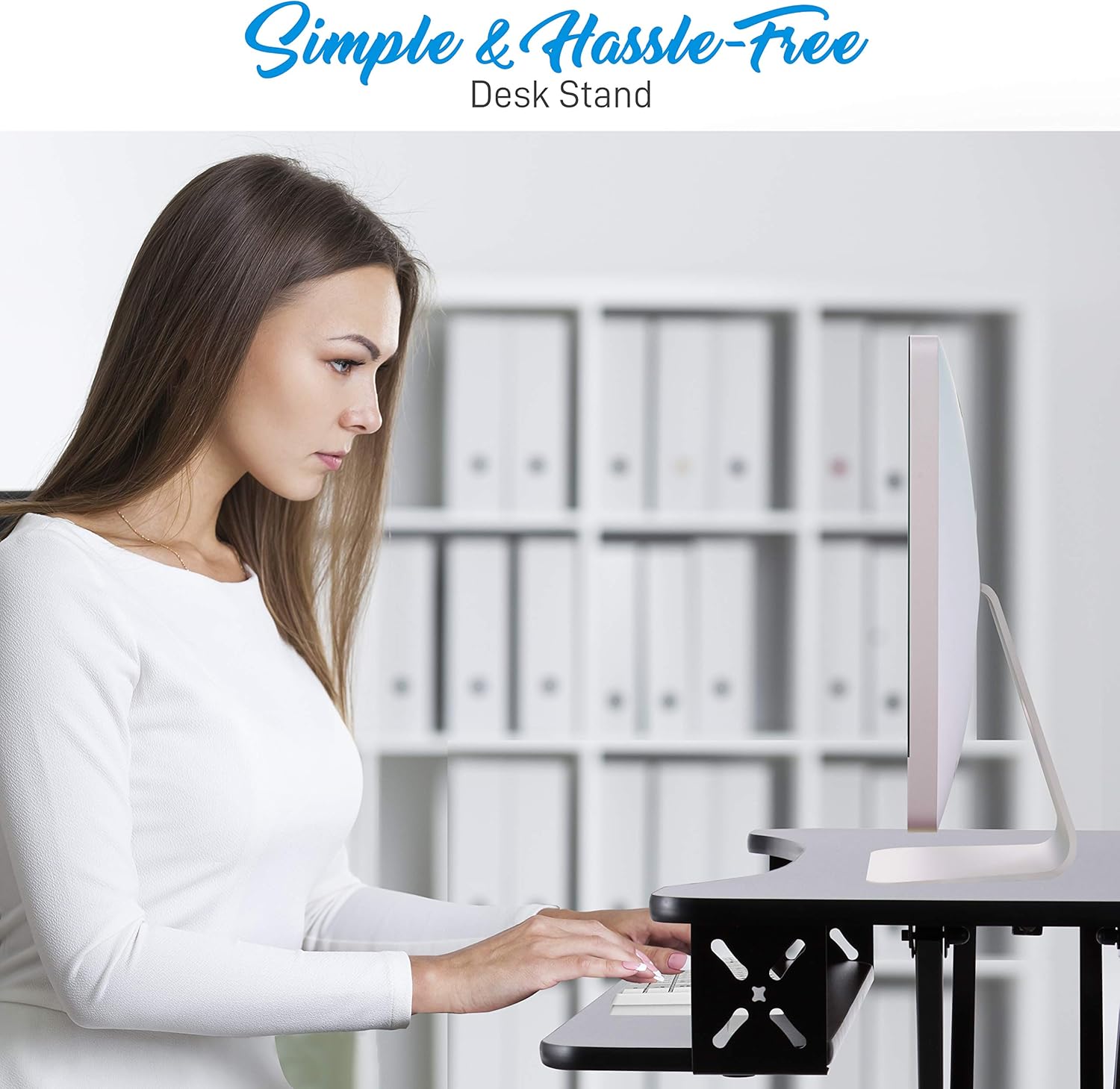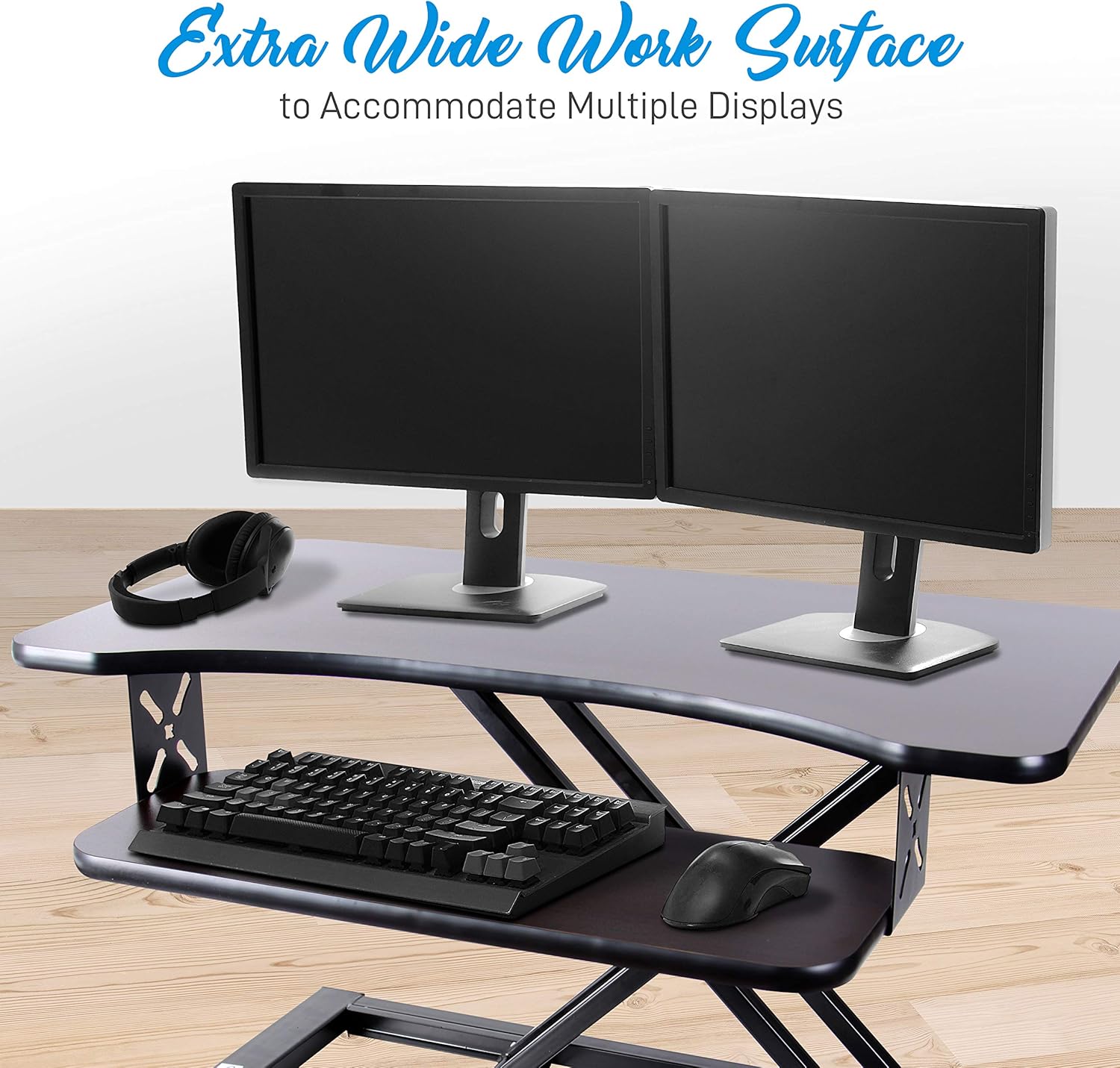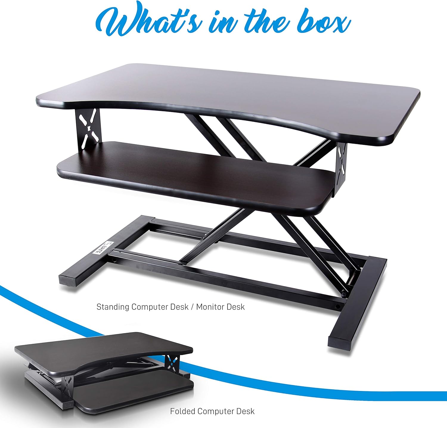 Pyle Ergonomic Standing Desk & PC Monitor Riser - Height Adjustable Laptop & Computer Table w/Wide Keyboard Tray - Black Sit & Stand Desktop Workstation Converter for Office or Gaming Use - PDRIS12