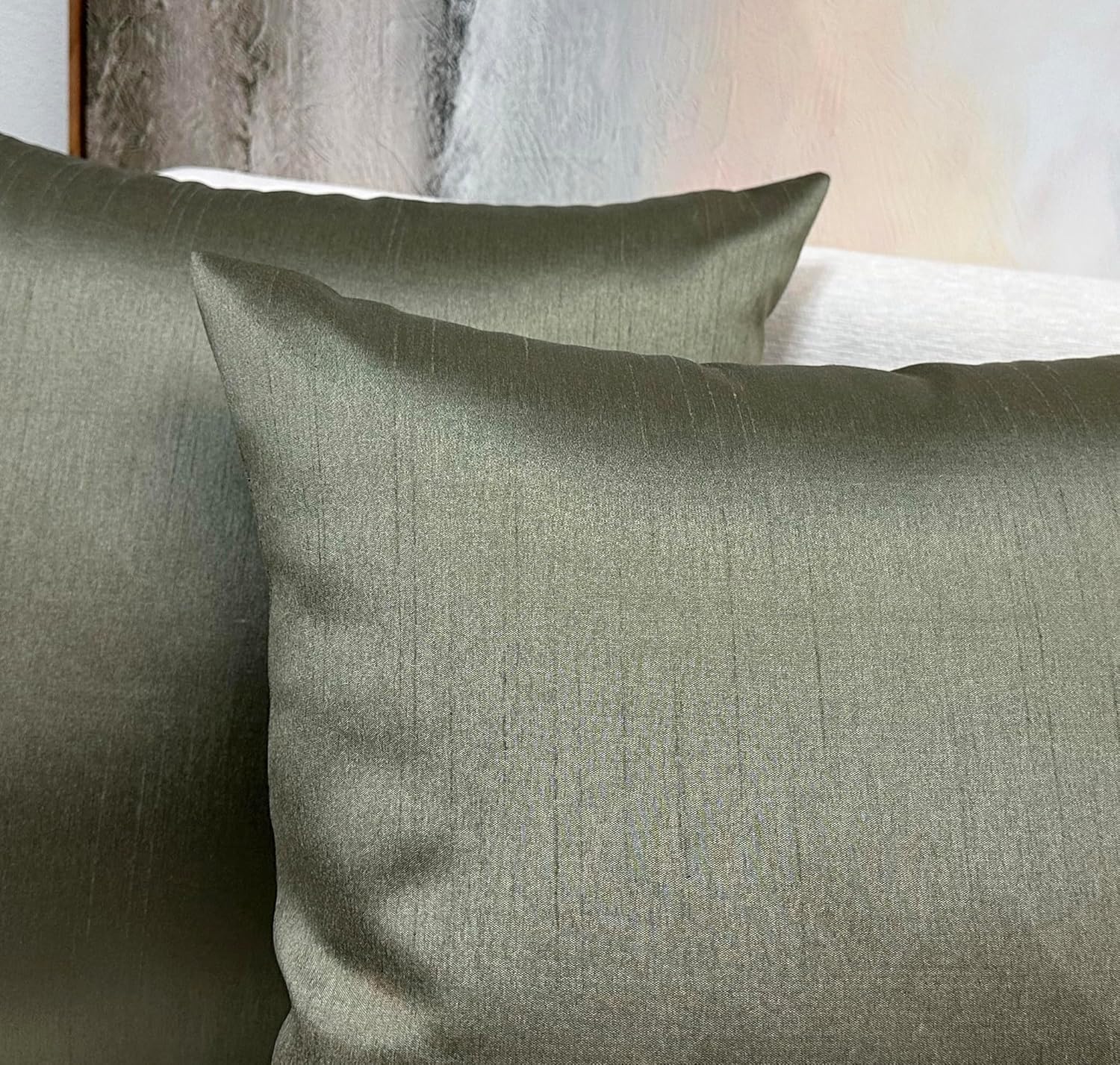 Aiking Home 26x26 Inches Faux Silk Square European Shams, Zipper Closure, Sage (Set of 2)