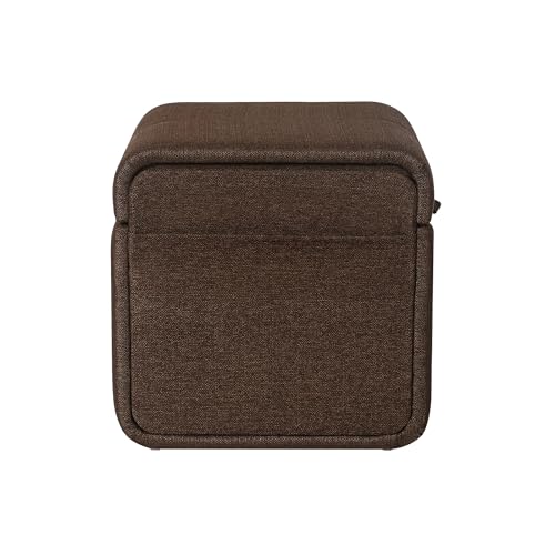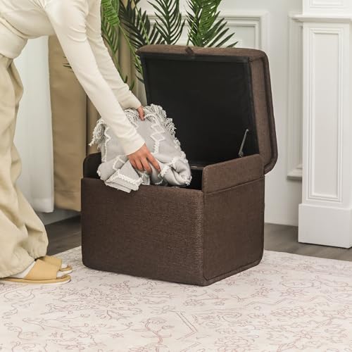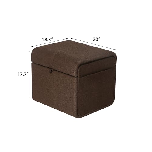 Homebeez Rectangular Storage Ottoman Cube Footrest with Side Pocket, Ice Blue Linen Fabric Foot Rest Stool Ottoman with Storage for Living Room Bedroom