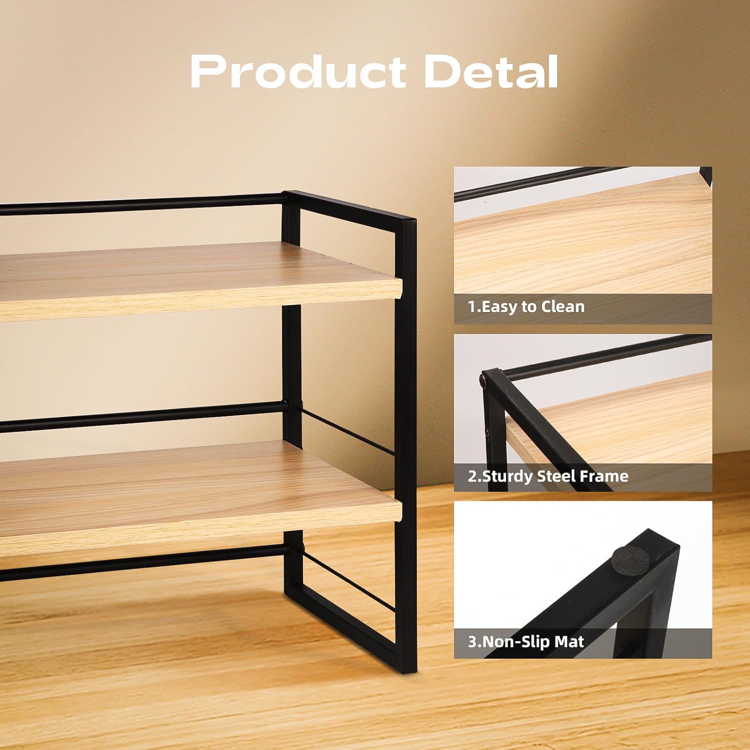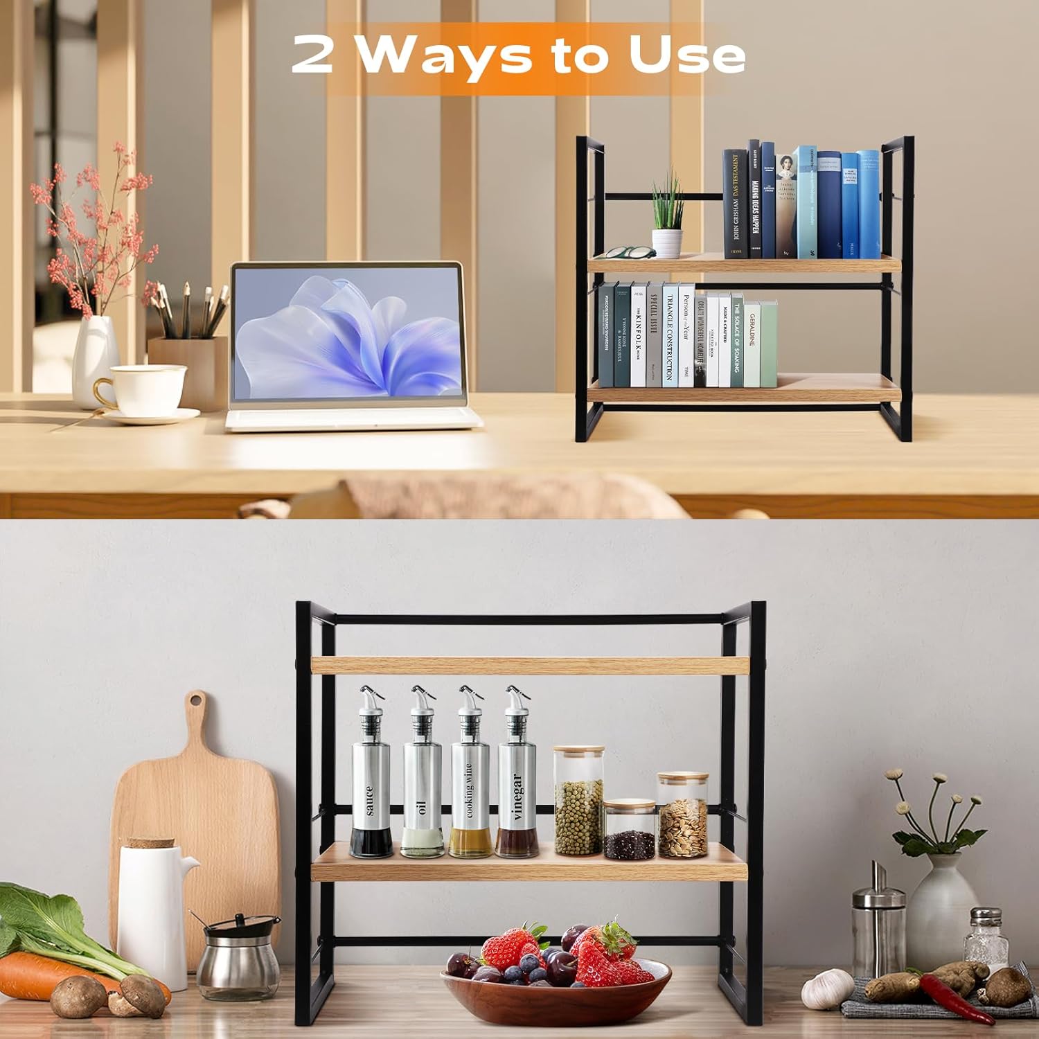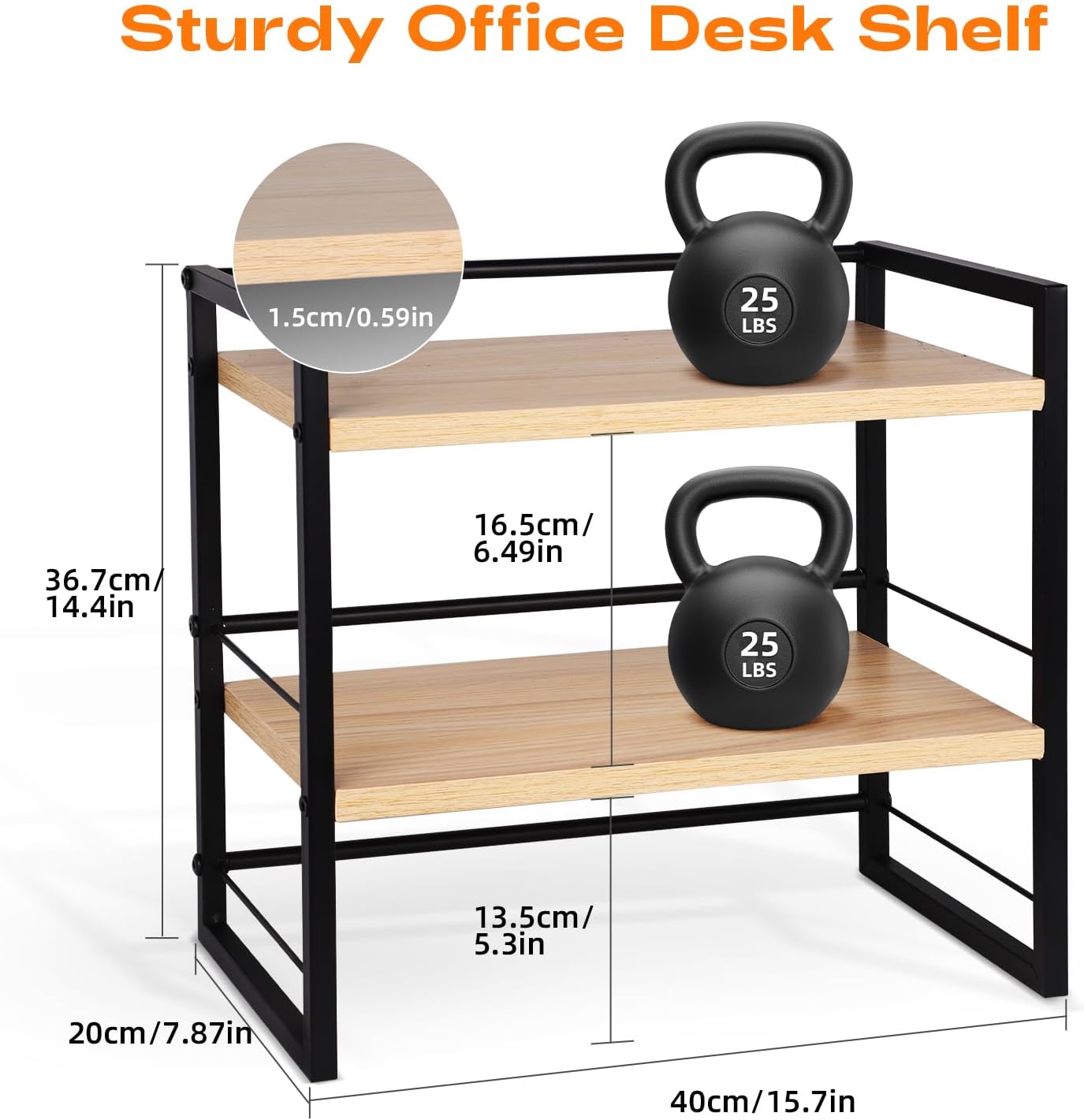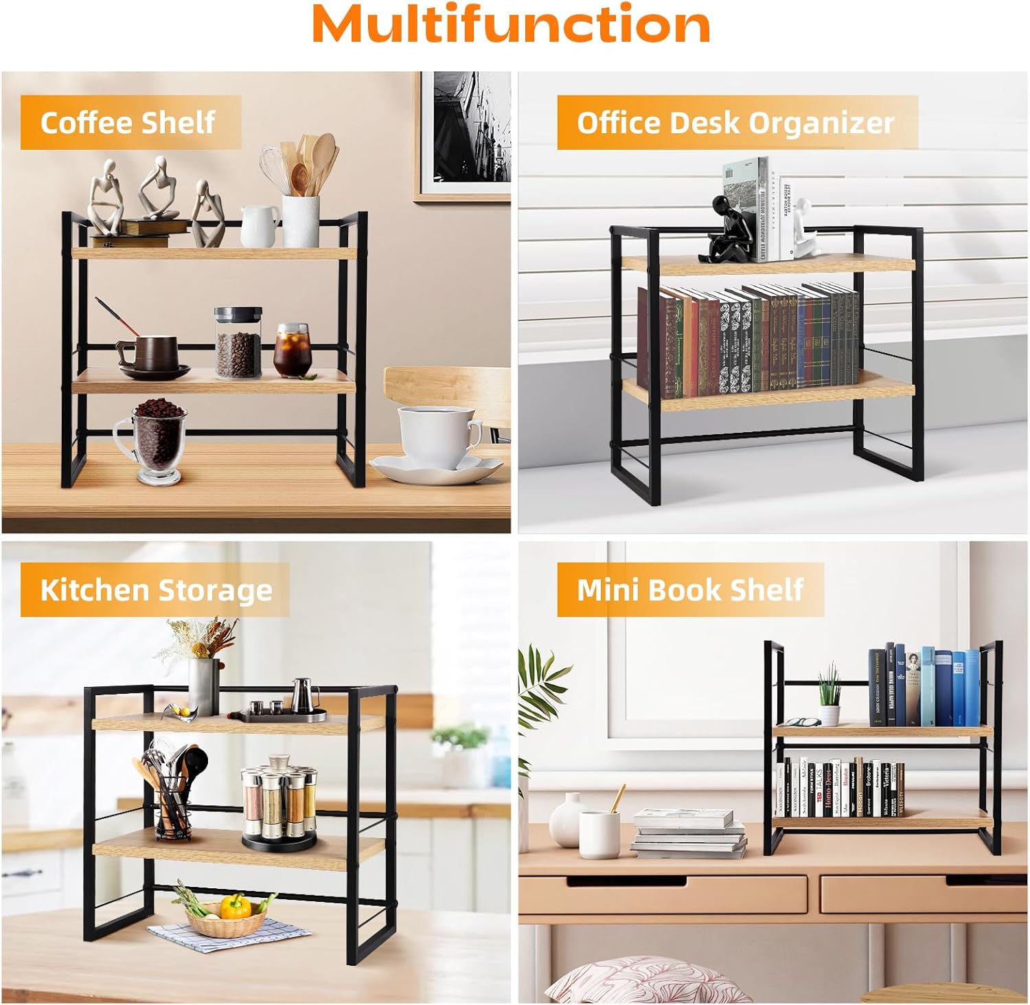 Desk Organizer Shelf,Set of 2 Wood Office Desktop Storage Shelf,2 Tier Mini Bookshelf/Kitchen Counter Shelf/Cabinet Organizer