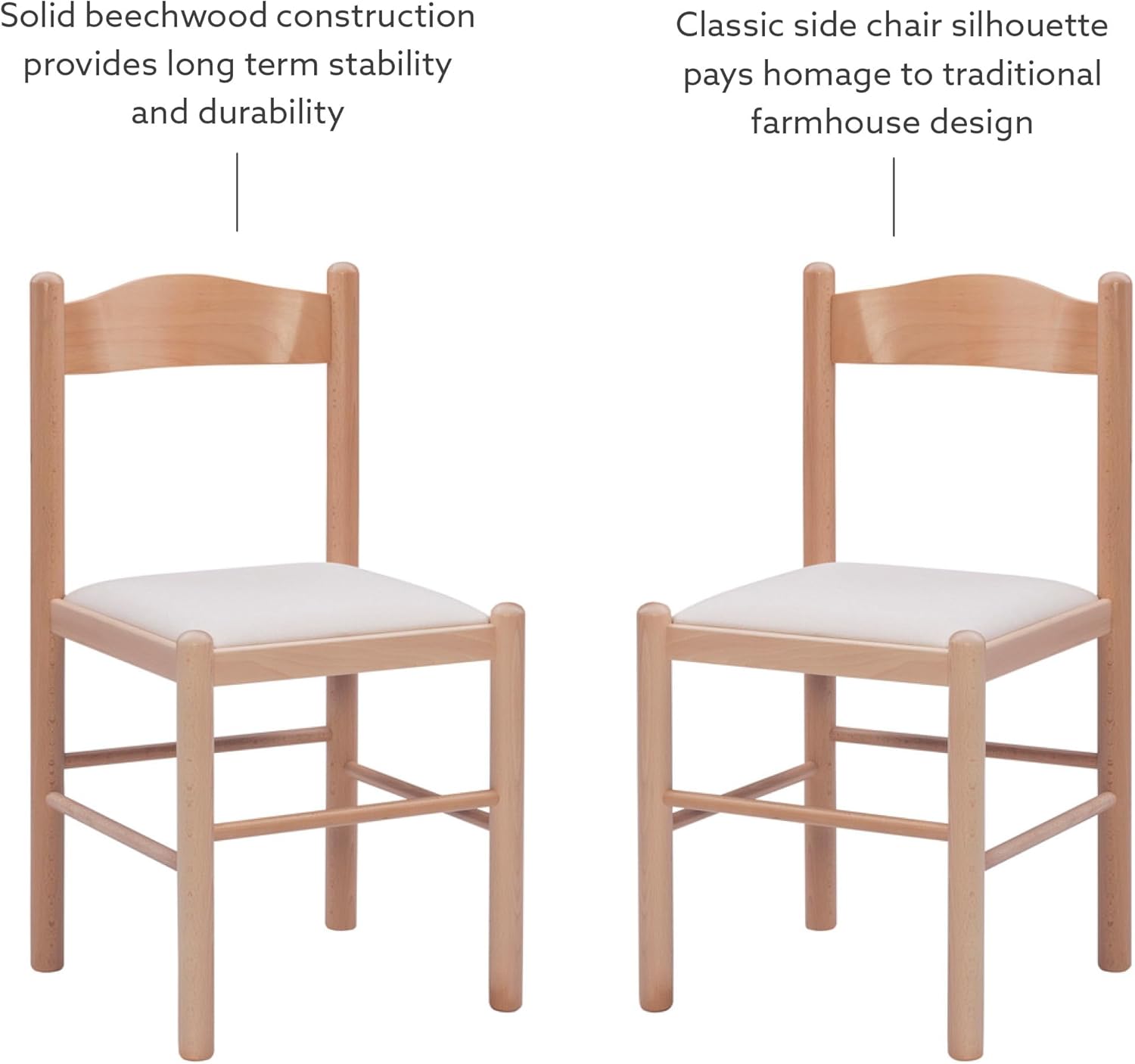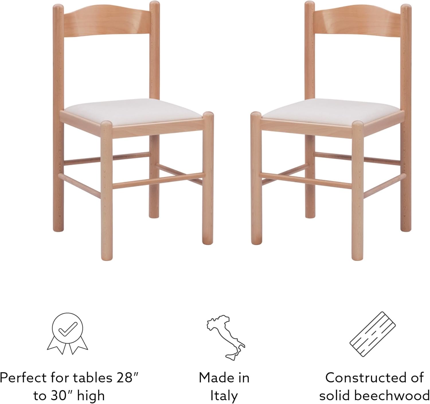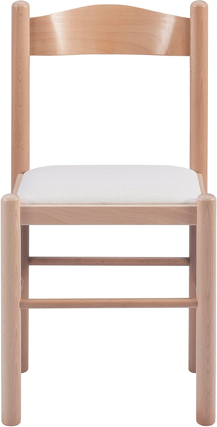 Linon Minka Solid Beechwood Italian Dining Side Chair Upholstered Seat Set of 2, Natural and Beige