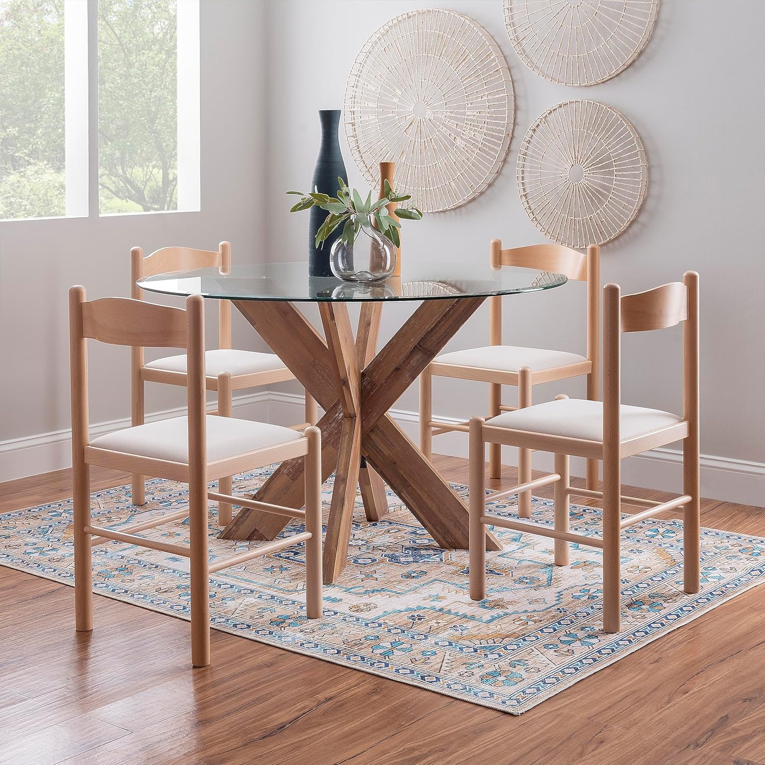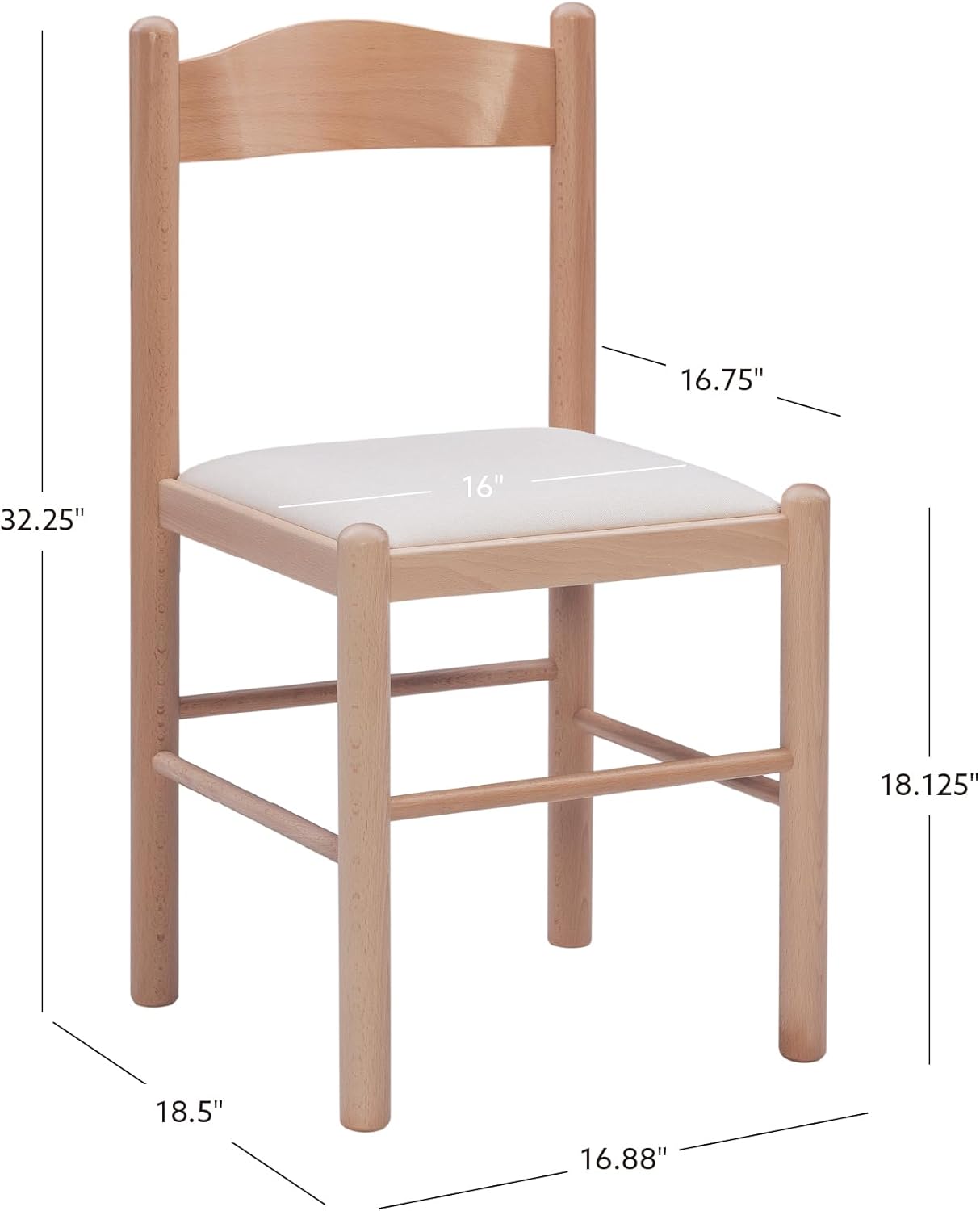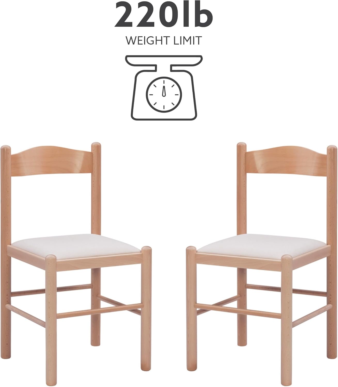 Linon Minka Solid Beechwood Italian Dining Side Chair Upholstered Seat Set of 2, Natural and Beige