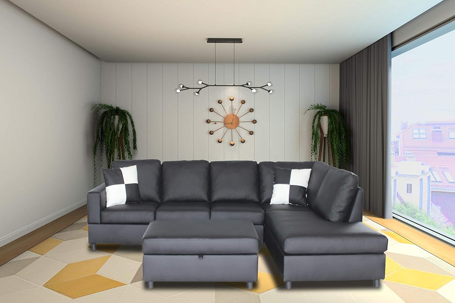 MEGA Furnishing 3 Piece Sectional Sofa with Right Chaise Lounge Chair/Ottoman with Hidden Storage