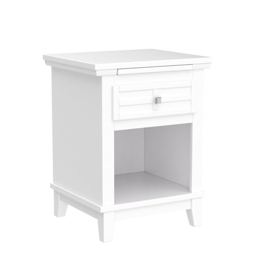 MUSEHOMEINC Rustic Wood Nightstand/End Table with Drawer, and Pull-Out Tray/End Table for Bedroom Open Cabinet Storage Home Furniture,Teak Finish