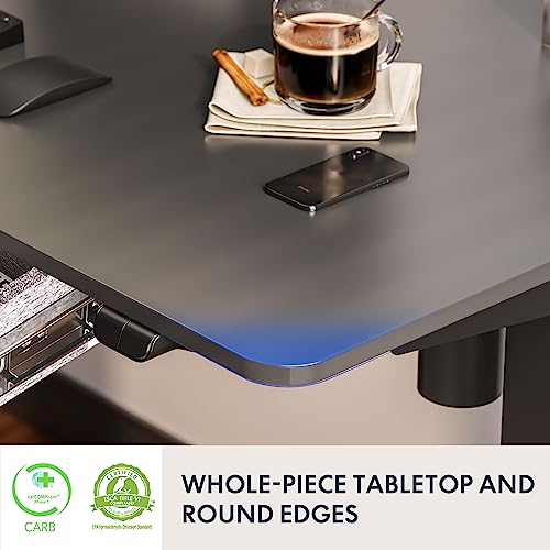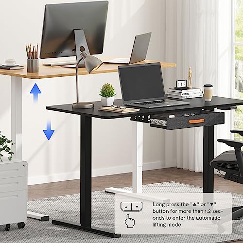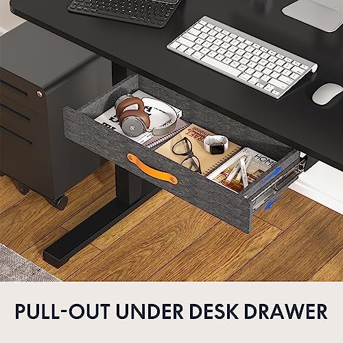 FLEXISPOT Standing Desk with Drawer Electric Sit Stand Desk with 48 x 24 Inches Whole-Piece Desktop Ergonomic Memory Controller Adjustable Height Desk(White Frame + 48" Bamboo Texture Desktop)