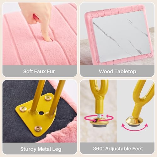 Redlife Vanity Stool with Storage, Vanity Stool Chair, Faux Fur Vanity Chair with Gold Metal Leg, Footrest Footstool Ottoman, Multifunctional Makeup Vanity Chair for Vanity Makeup Room Bedroom(White)