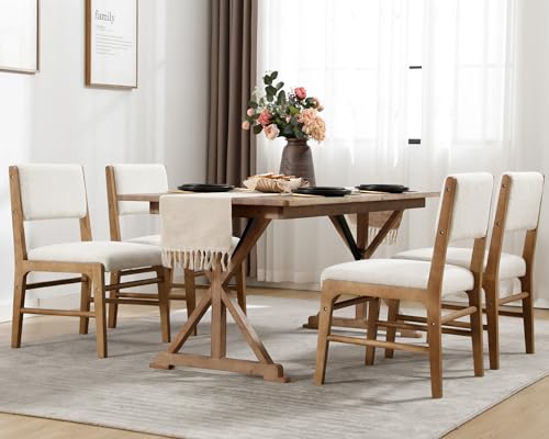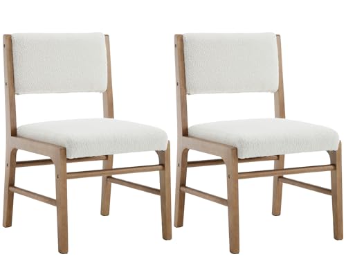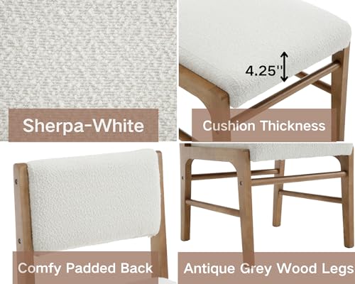 VESCASA Upholstered Dining Chairs with Rectangular Cushion Back, Mid-Century Modern Padded Dining Chairs with Wood Legs for Dining Room, Kitchen, Set of 4, White Sherpa Fleece
