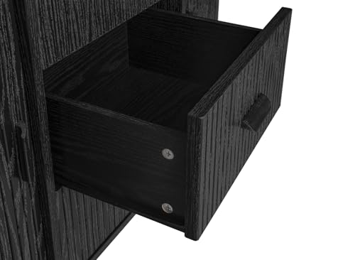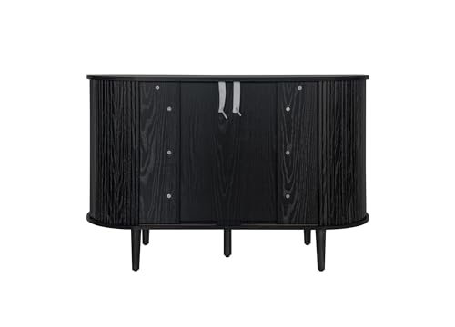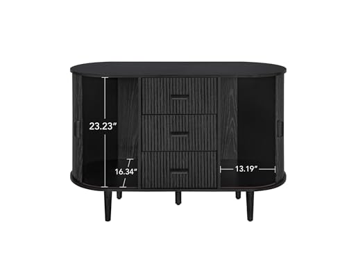 ZeHuoGe Sideboard Buffet Storage Cabinet, Accent Cabinet with Smoothly Sliding Tambour Doors, Modern Kitchen Buffet Cabinet with 3 Drawer and 2 Doors for Living Room Dining Room (Black)