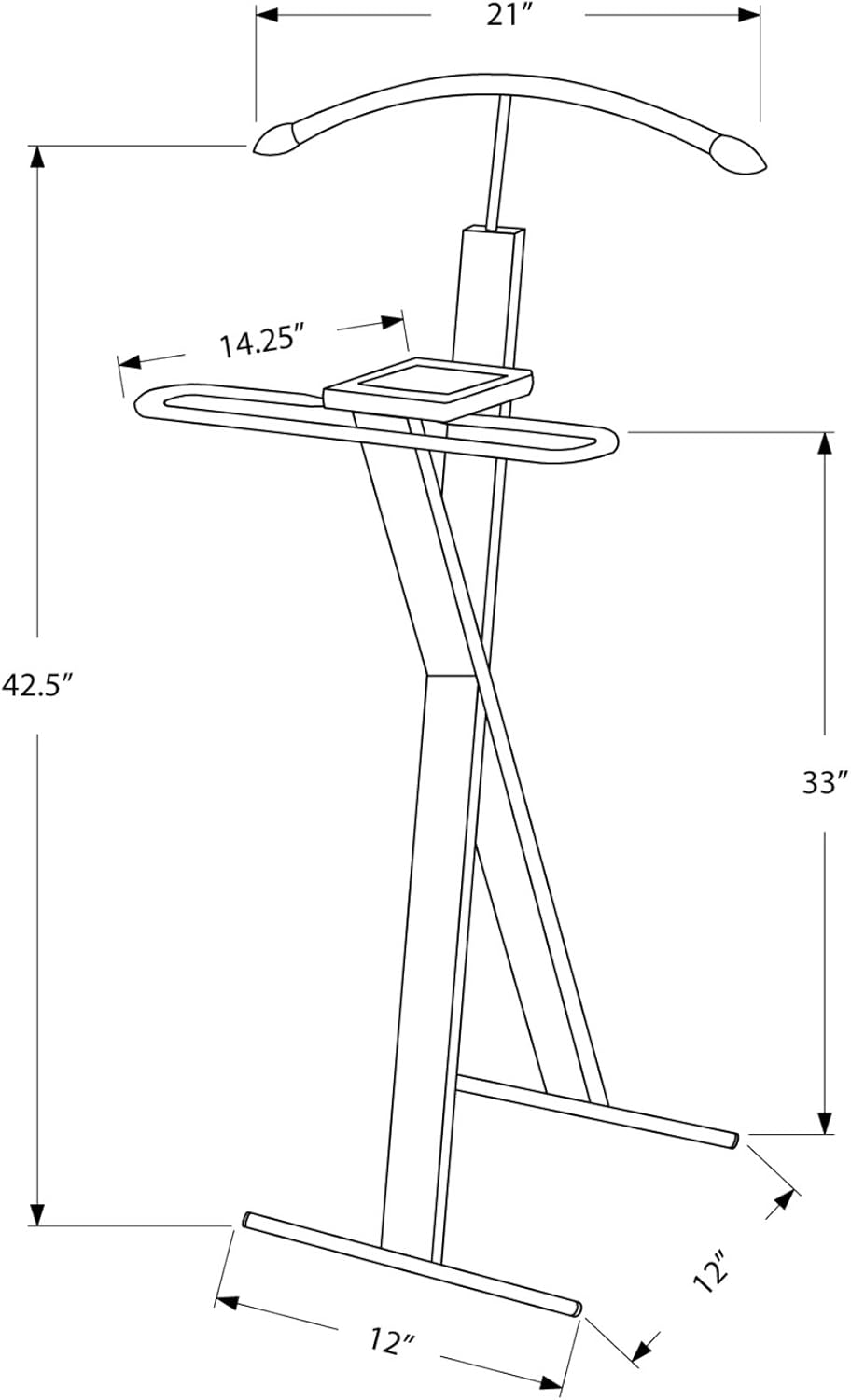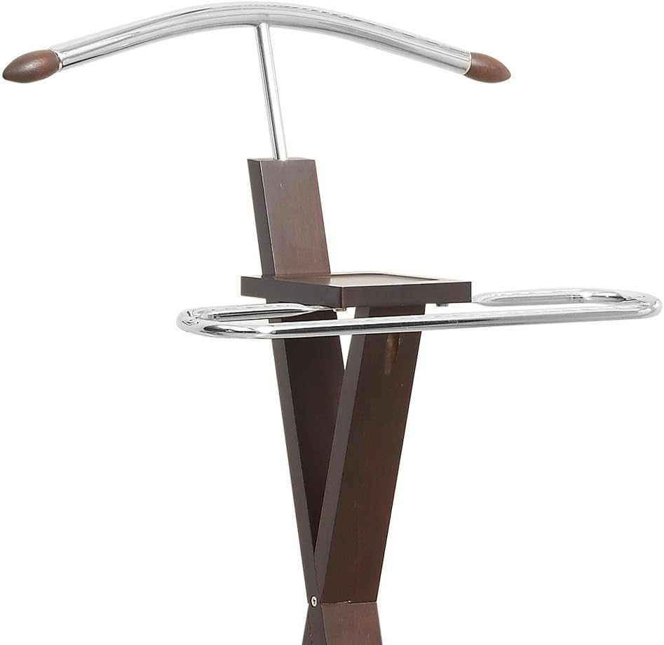 Monarch Specialties 2024 Valet Stand, Organizer, Suit Rack, Bedroom, Wood, Metal, Brown, Chrome, Contemporary, Modern Accent Espresso, 21" L x 14.25" W x 42.5" H, Cappuccino