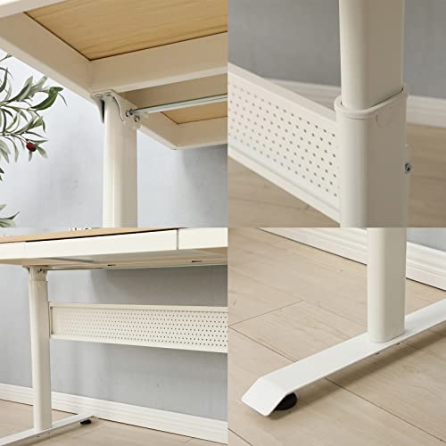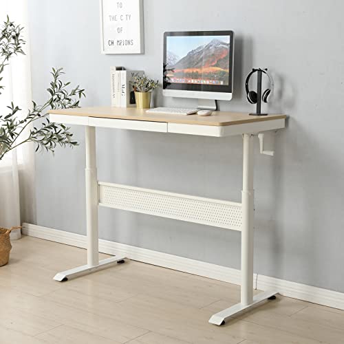 Standing Desk with Metal Drawer White Tabletop Computer Desk Adjustable Height 29.5''-47.6'' Stand up Desk Sit Stand Home Office Writing Desk Ergonomic Workstation, Weight Capacity 220 lbs