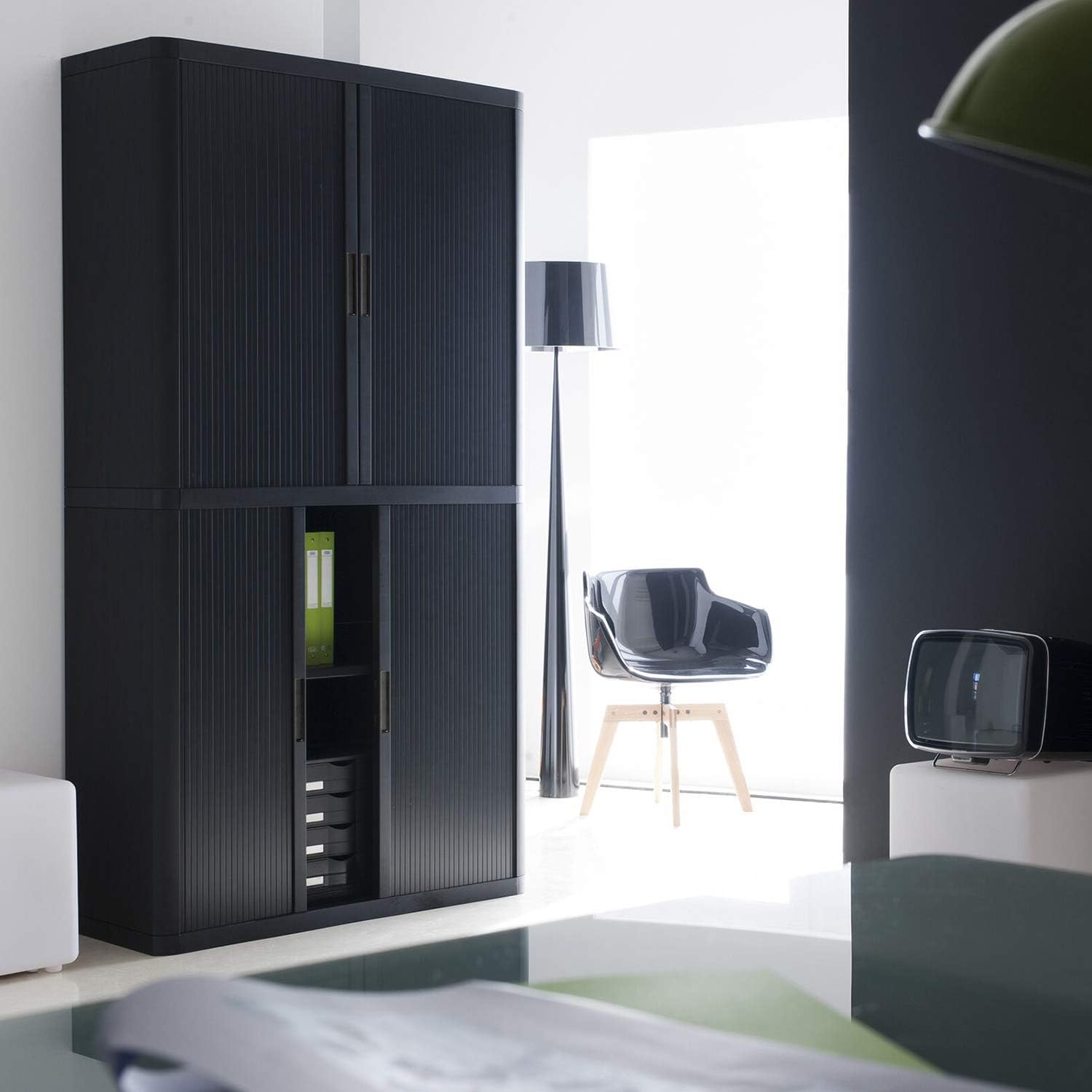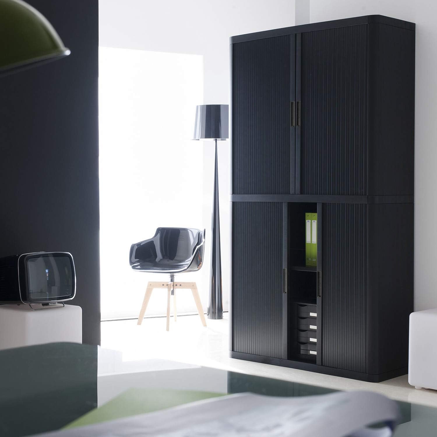 Black 81 Inch Tower Bathroom Towel Storage Cabinet Tall Organizer Kitchen Furniture Drawer Cupboard 4 Shelves Pantry Door Shelf Home Office Polystyrene Metal 43.33" W x 16.33" D 80.43" H