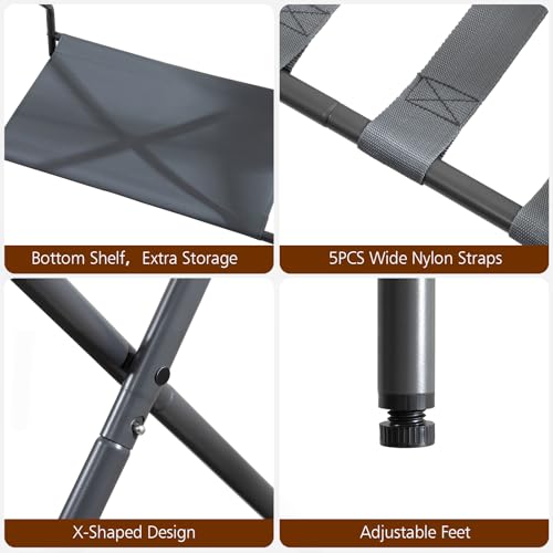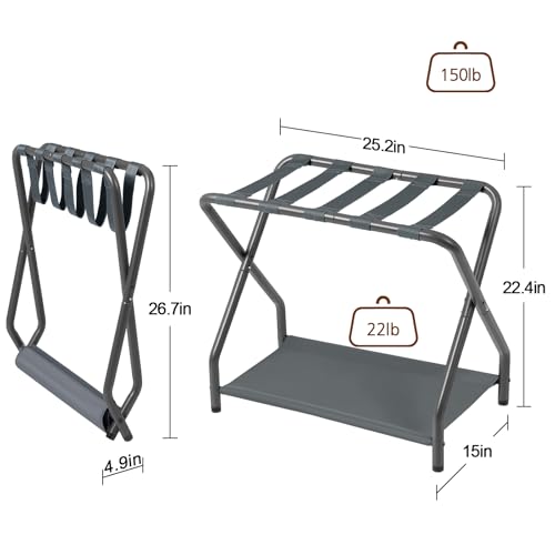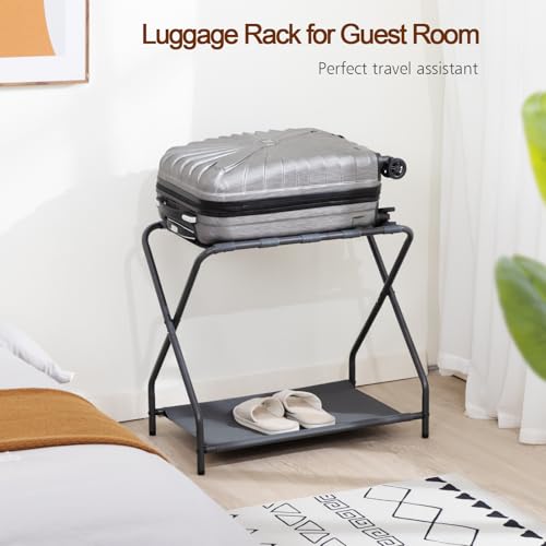 AMHANCIBLE Luggage Rack, Set of 2, Foldable Suitcase Stands for Guest Room, Metal Luggage Holder with Storage Shelf for Bedroom, Hotel, Easy Assemble, Dark Grey, HLR02SG