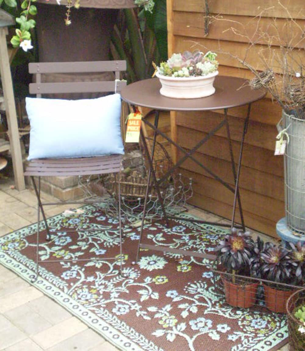 Mad Mats Outdoor Rug, Reversible Plastic Mat for Patio, Deck, Camping, Indoors, Oriental Garland, 4' x 6', Teal/Brown
