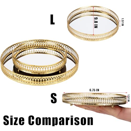 Gold Mirrored Vanity Tray for Bathroom Counter,Metal Decorative Jewelry Storage Tray Cosmetic Perfume Organizer for Dresser,Bedroom,Home Decor,Suit for Candle Holder,Coffee Table Centerpiece,S