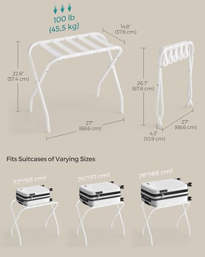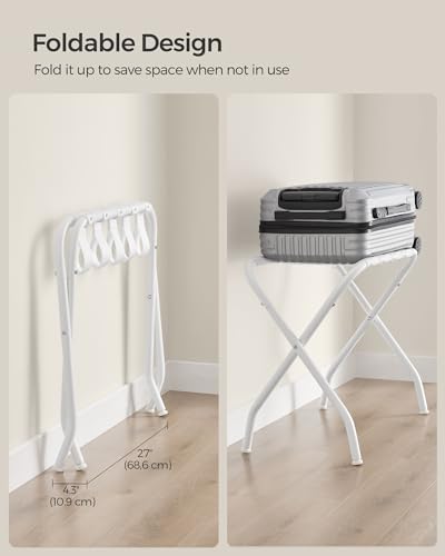 SONGMICS Luggage Rack, Luggage Rack for Guest Room, Suitcase Stand, Steel Frame, Foldable, for Bedroom, Golden URLR064A01