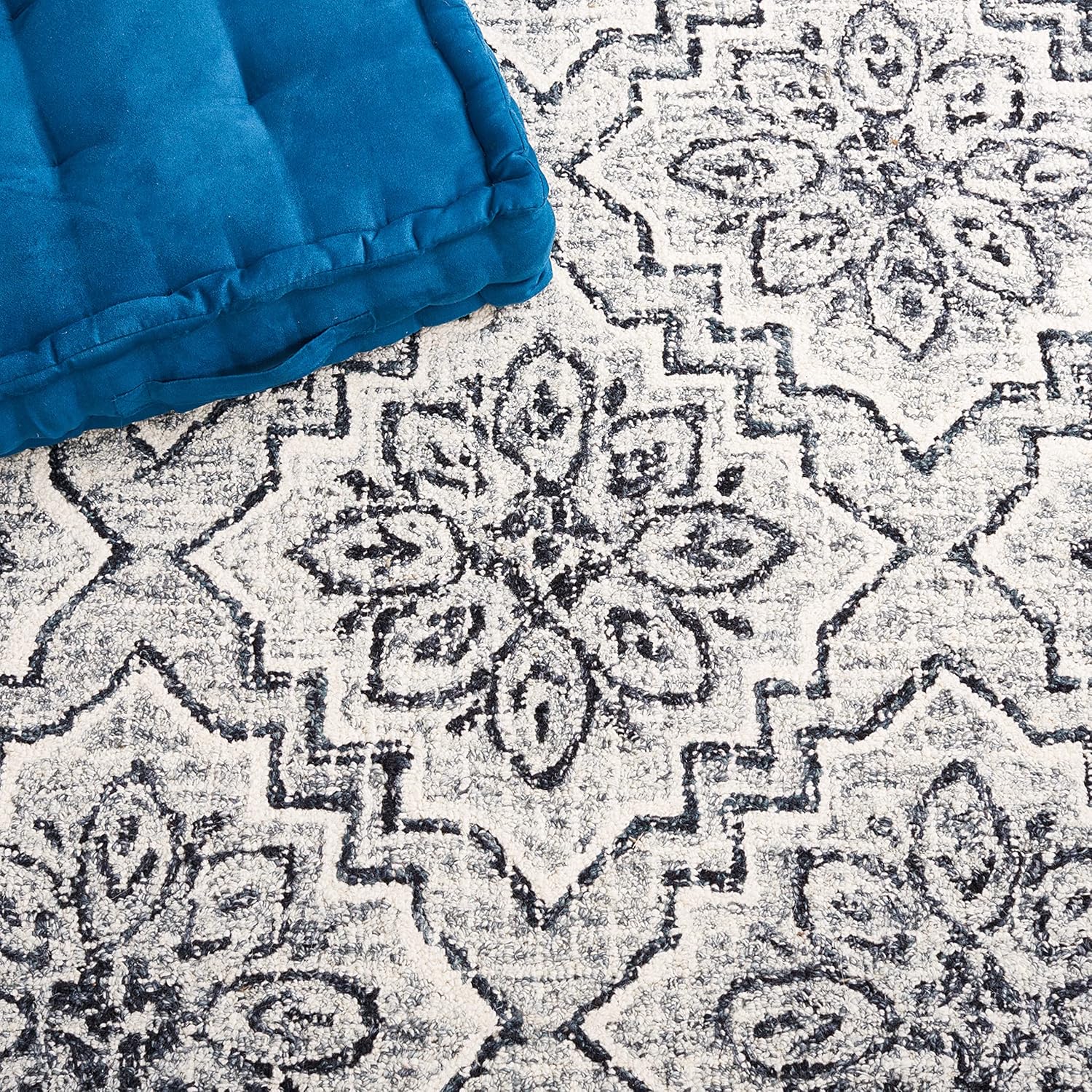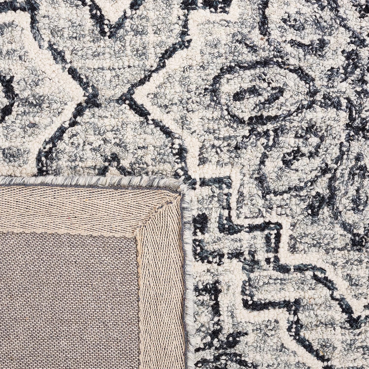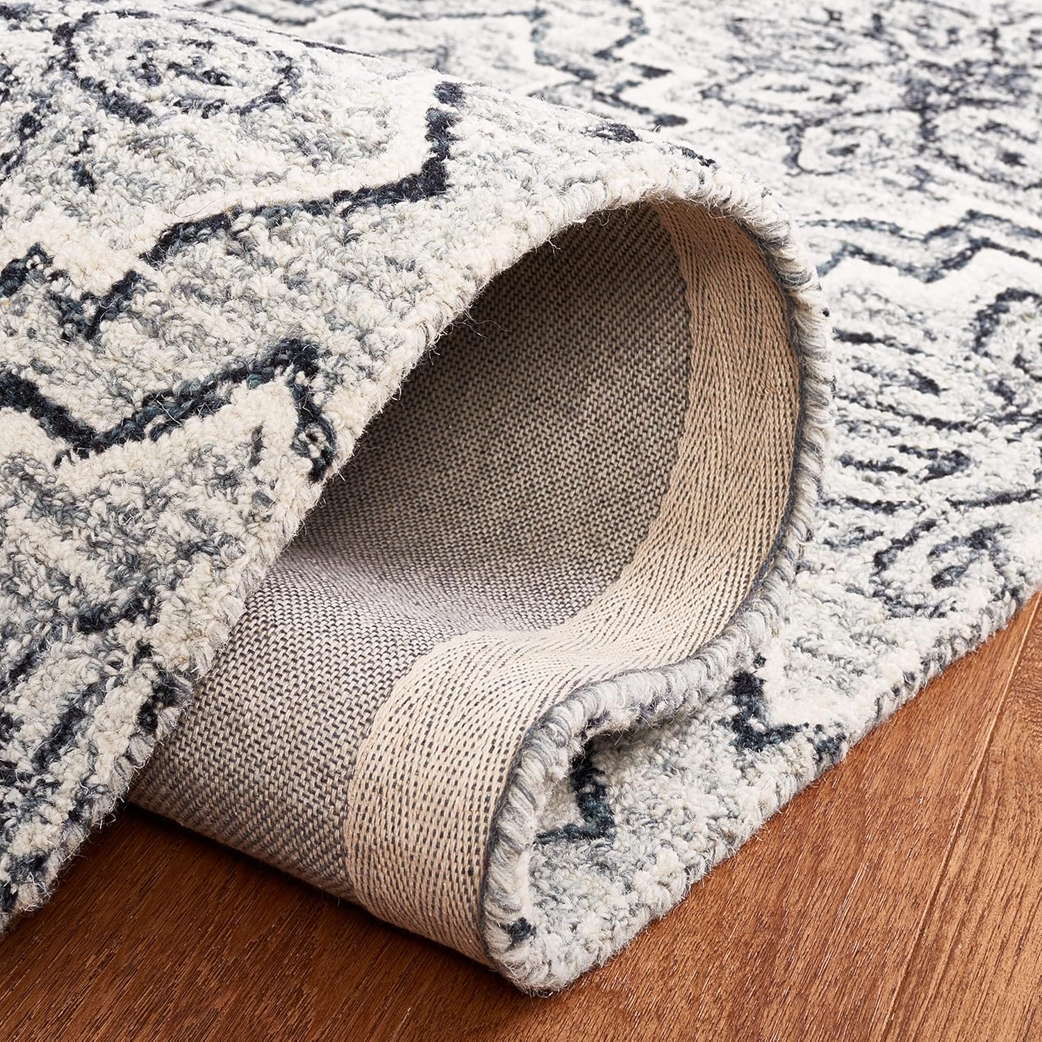 SAFAVIEH Abstract Collection Area Rug - 8' x 10', Dark Blue & Grey, Handmade Wool, Ideal for High Traffic Areas in Living Room, Bedroom (ABT201M)