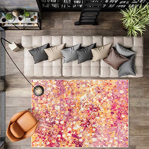 Eyely PTC108A-5 CONTEMPORARY POP Modern Abstract Indoor Area Rug Transitional;Bohemian;Vintage, Bedroom, Kitchen, Living Room, Easy-Cleaning, Non-Shedding, 5 X 8, Multi/Yellow