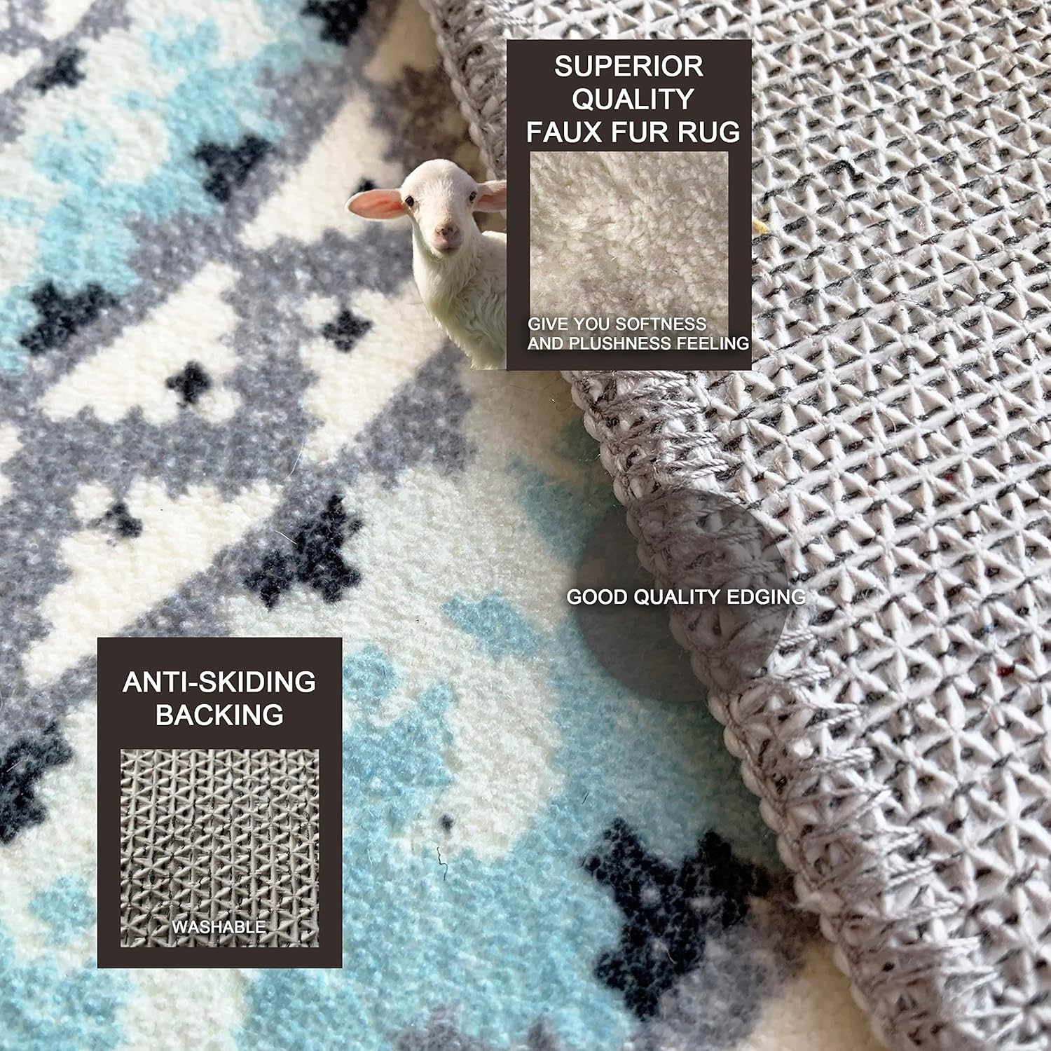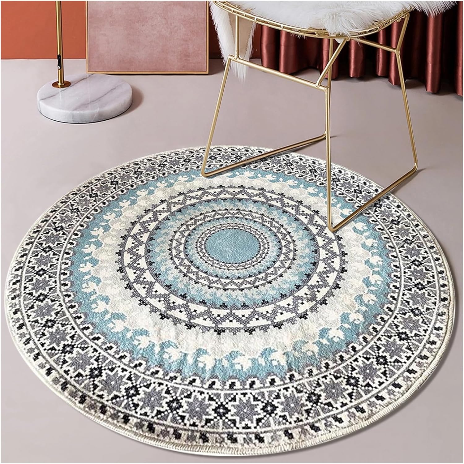 Luxury Faux Fur Boho Round Area Rug,Silky Imitation Sheepskin Stain Resistant Free Modern Contemporary Transitional Ultra Soft Living Dining Room Bedroom Carpet 4'x4' Round Blue / Multi
