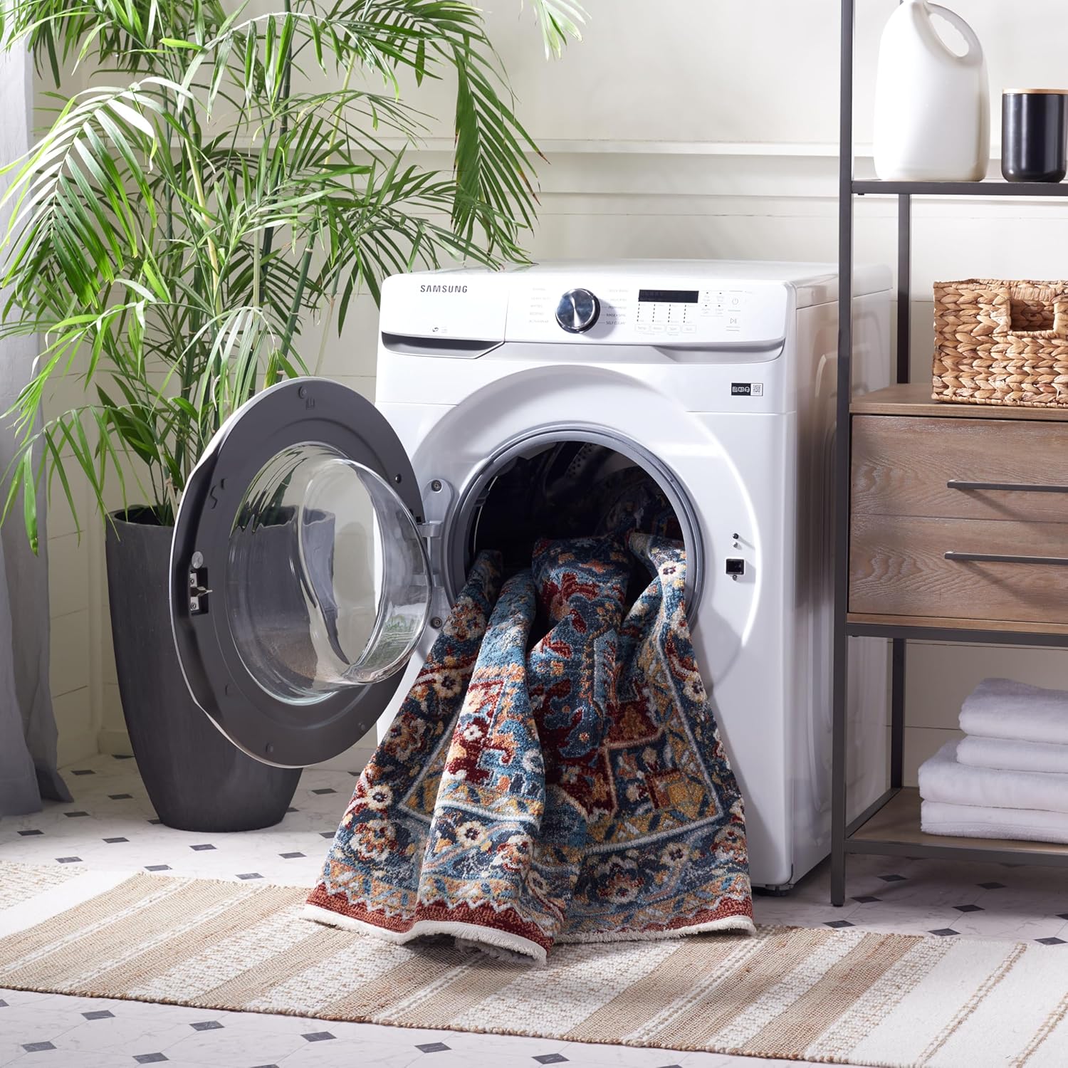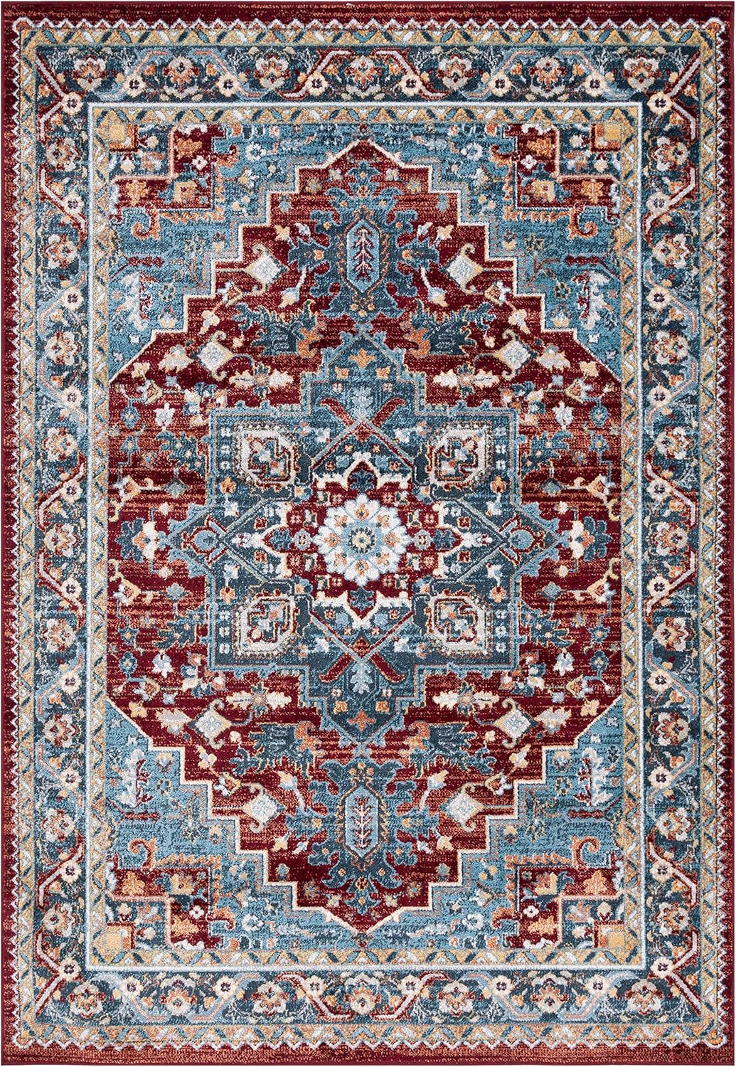 Safavieh Bayside Collection Area Rug - 5'3" x 7'6", Blue & Red, Traditional Oriental Design, Non-Shedding & Easy Care, Machine Washable Ideal for High Traffic Areas in Living Room, Bedroom (BAY108M)