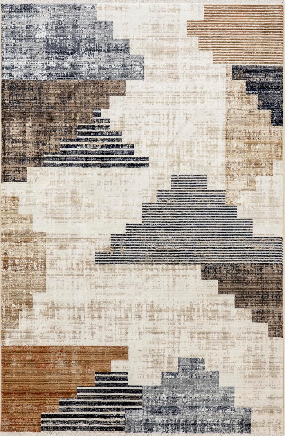 nuLOOM Fringed Performance Indoor Area Rug, Power Loomed, Easy Clean, Durable, Non-Shed, 7' x 10', Vanita Beige