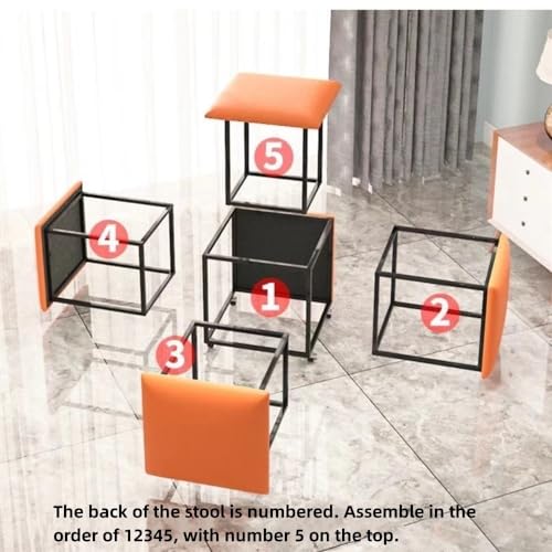 Stackable Stools, 5 in 1 Cube Seat with Swivel Casters, Stackable Sofa Chair Stool Nesting Ottoman Stool Movable Footstool Dressing Chair for Living Room(Light gray,Large)