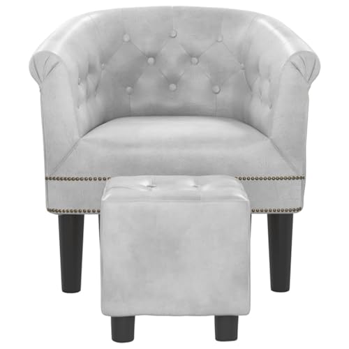 Tub Chair with Footstool Silver Faux Leather,Elegant Silver Tub Chair with Footstool: for Home or Office Living Room Furniture