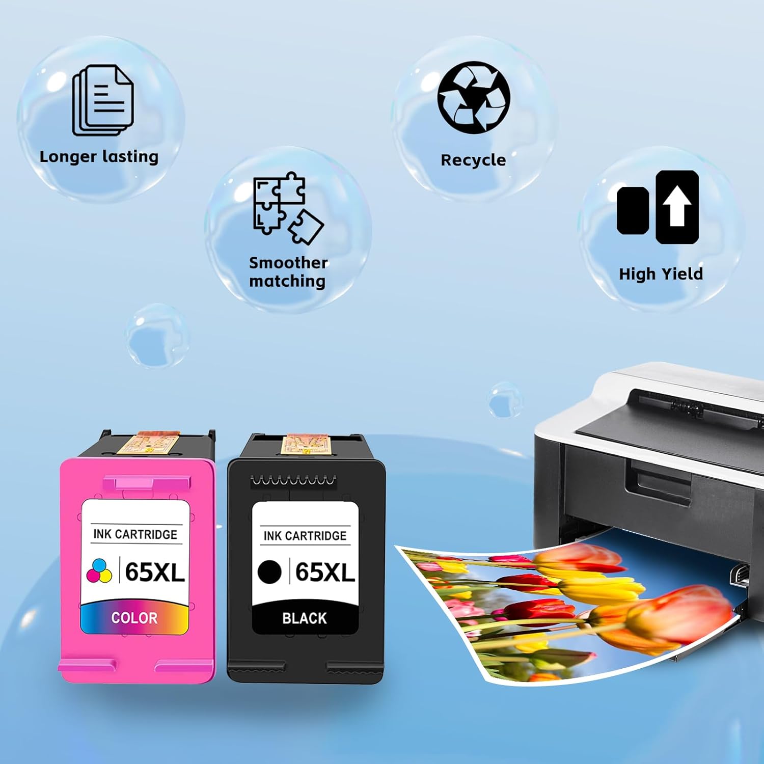 65XL Ink Cartridges Combo Pack Remanufactured for HP Ink 65 High Yield work for HP Deskjet 3700 3755 3752 3772 2600 2652 2655 Envy 5055 5000 5052 65XL Ink Cartridges Ink Cartridges Black and Tri-Color